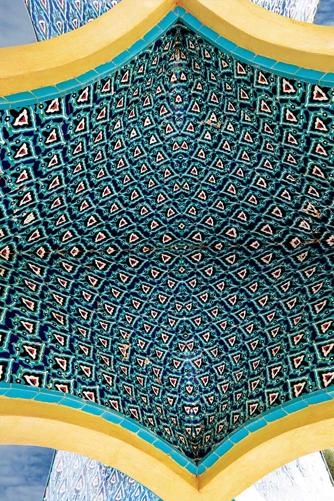 “This mausoleum was conceived in the simplest form—both in plan and in volume. The plan is a rectangle in the 1:2 proportion, essentially two squares. This proportion and these dimensions have long been traditional among Iranians; land plots, garden beds, carpets, pools, rooms, and other objects considered beautiful were often made in this ratio. Fundamentally, the square has been of great importance to Iranians for centuries: the plans of the Achaemenid palaces at Persepolis, both in whole and in detail, were based on the square. To achieve the overall volume, walls were erected along the diagonals of the two squares. Upon these, four semi-circular arches of low height were placed—two pairs perpendicular to each other. On the higher perimeter sides of the squares, six further arches were built, forming the visible exterior composition. The interstitial spaces between these arches required geometric infill, resulting in the current form of the structure. The entire building was constructed of reinforced concrete. The decorative surfaces—without distinction between interior and exterior—were inspired by the stucco reliefs of the Borujerdi House and by motifs from Kashan’s timchehs and bazaars, executed in mosaic tile across the entire structure.”