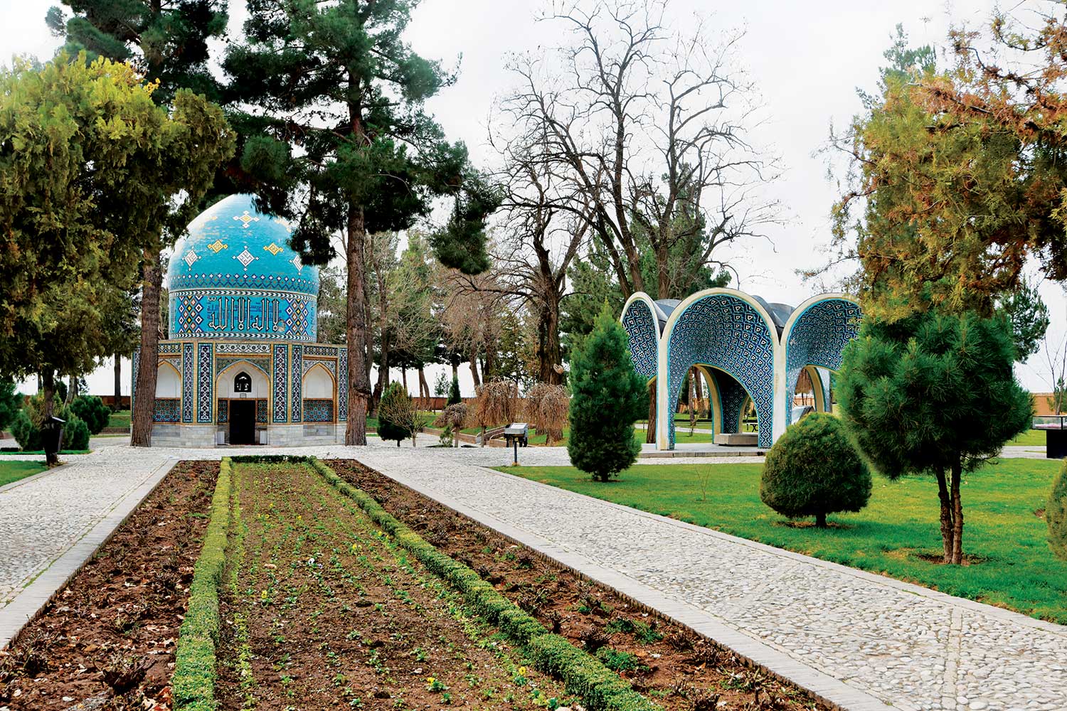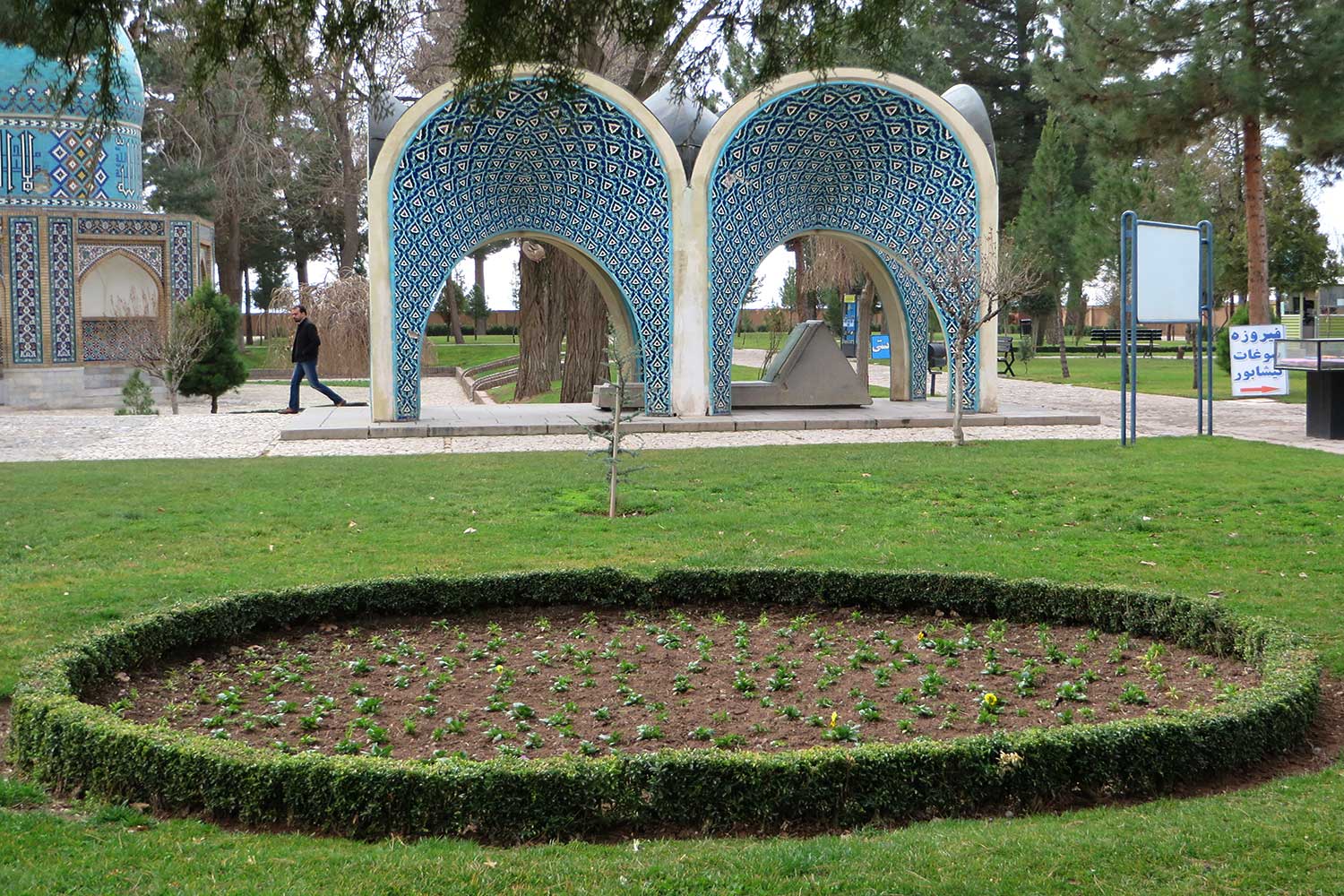 “Linguists argue that for a language to remain alive, beyond its speakers or its domains of use, it must retain its power to generate new words. Seyhoun, in Kamal-ol-Molok’s mausoleum, demonstrates just that: a new word composed of ancient syllables. Here we find a two-bay sanctuary shaped from a four-part vault, where each bay is a complete iwan. The covering so dominates the void that what once served as ornamental margins in Persian architecture expand into full panels, turning the frame into the very subject. Each arch becomes a canvas, as if to re-present the enchantments of Iranian painting. The continuity of a nation’s architectural language, in Seyhoun’s gifted hand, reveals the role of this ‘Nima’ of architecture.” The mausoleum of Khayyam, the shrine of Attar, the tomb of Kamal-ol-Molok, and their related buildings—together with the Mausoleum of Nader Shah in Mashhad—were officially inaugurated on Monday, April 1, 1963 (12 Farvardin 1342 SH). On that day, Mohammad Reza Shah Pahlavi opened Nader’s mausoleum in Mashhad, then traveled by train to Neyshabur, arriving at 1:00 p.m., attending the ceremonies, and departing at 2:45 p.m.