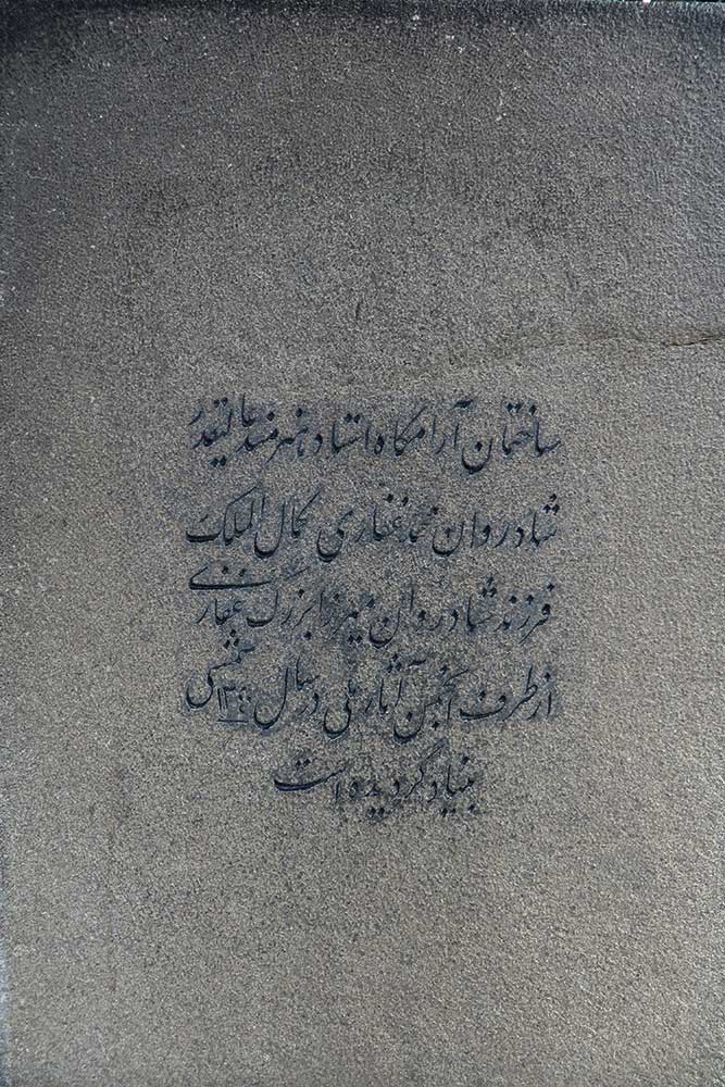 On Kamal-ol-Molok’s grave rests a stone measuring 1 × 3.46 meters in length and width, with a height of 40 cm. At the head of the grave, the stone rises into a prismatic form of 1.20 meters in height. Inscribed on the gravestone are the following words: