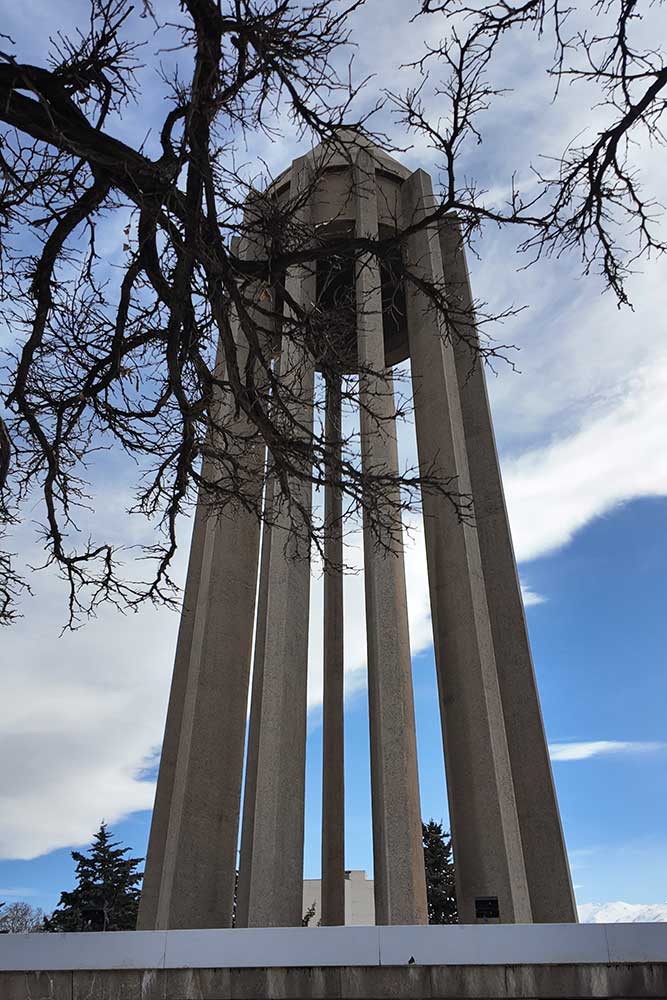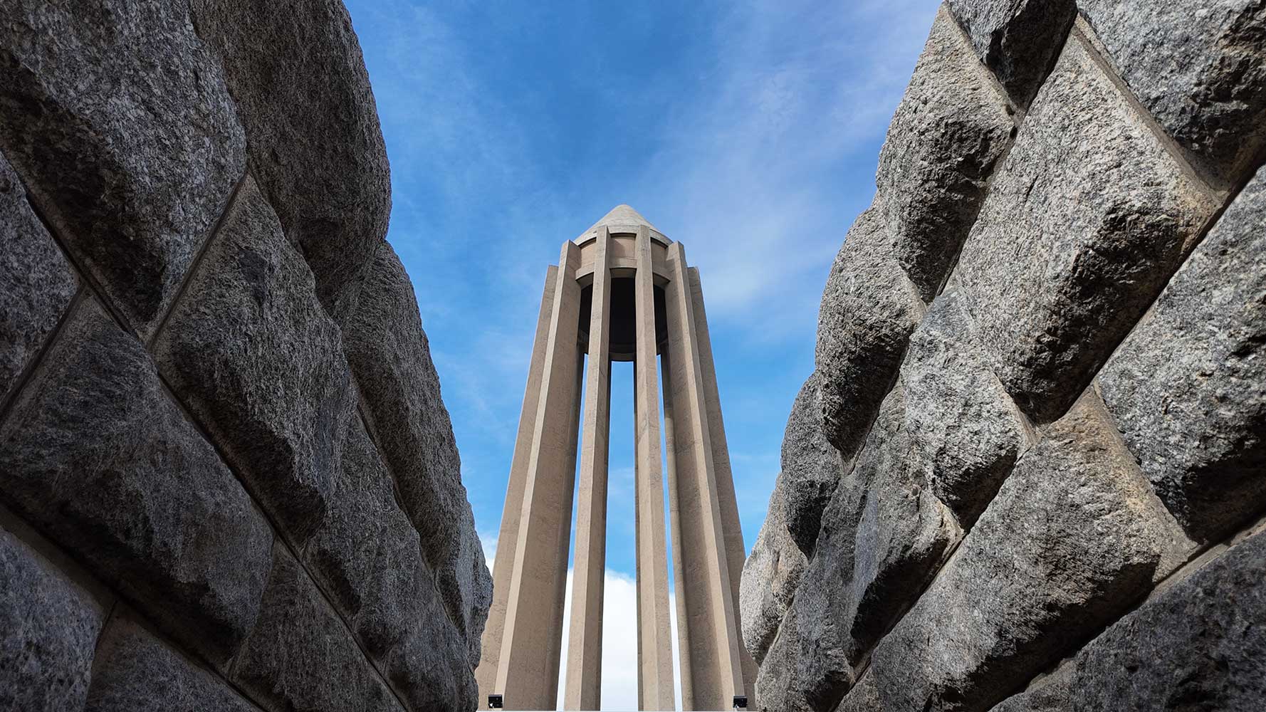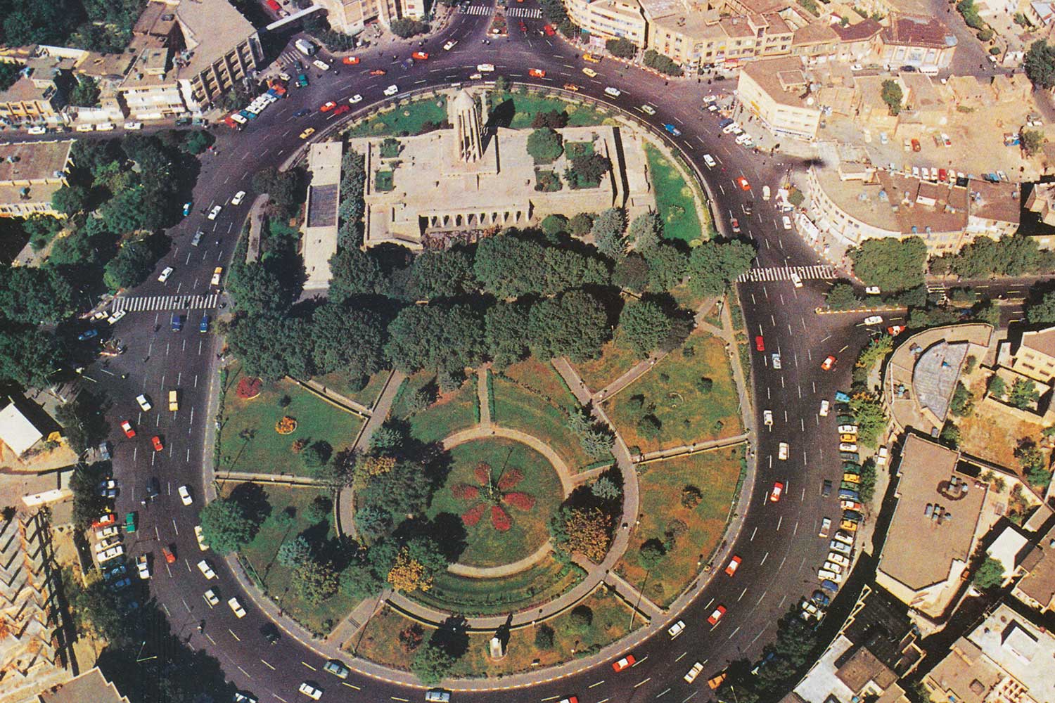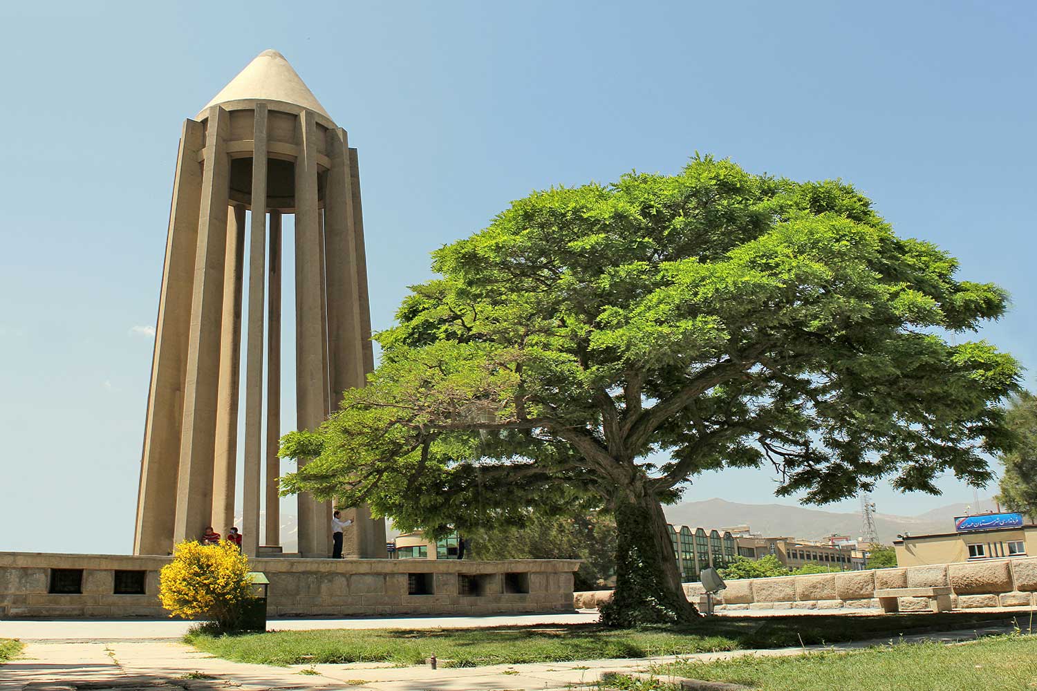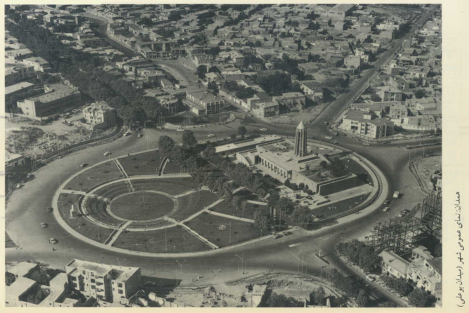 “The lower section evokes the grandeur of ancient Egyptian, Persian, and Greek architecture, while the twelve-ribbed tower recalls Gonbad-e Qabus. In construction and proportion, however, it is wholly modern. The rough-cut granite base symbolizes strength; the refined tower above conveys lightness and dignity. The surrounding gardens and fountains echo the freshness of the East and the harmony of the Hanging Gardens of Babylon.”