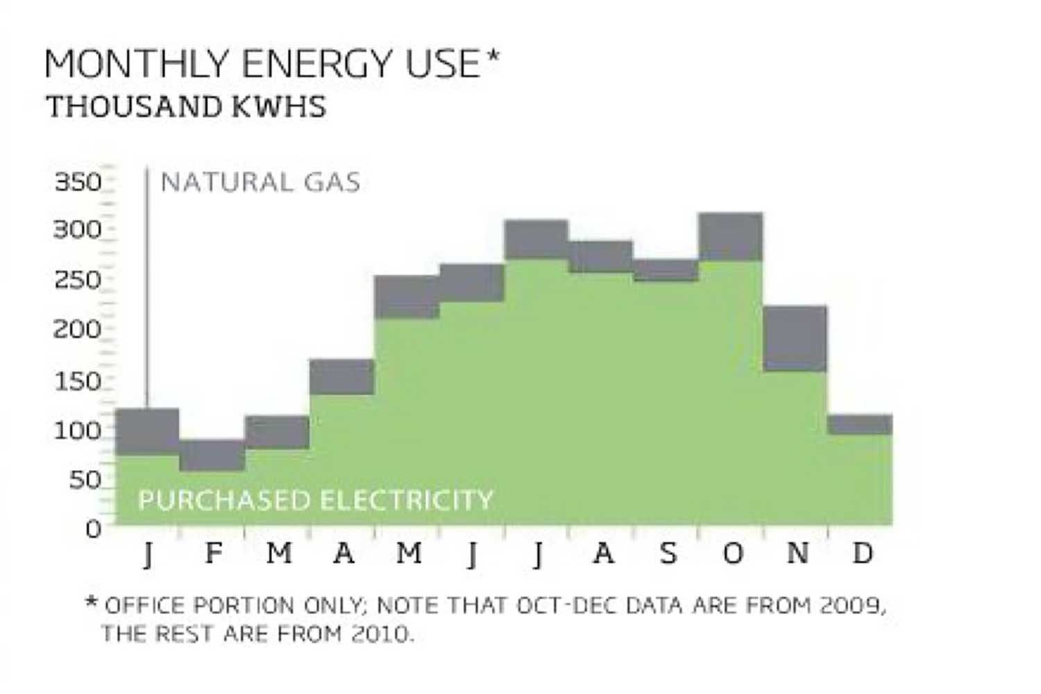 Vanke’s headquarters is among the first buildings in China to achieve LEED Platinum status. 15,000 square feet of photovoltaic panels on its roof provide 12.5% of the building’s total electricity. The louvers system, composed of both fixed and operable panels with perforations of varying sizes, is computer- and sensor-regulated according to solar angles and intensity, reducing solar heat gain by 70%.