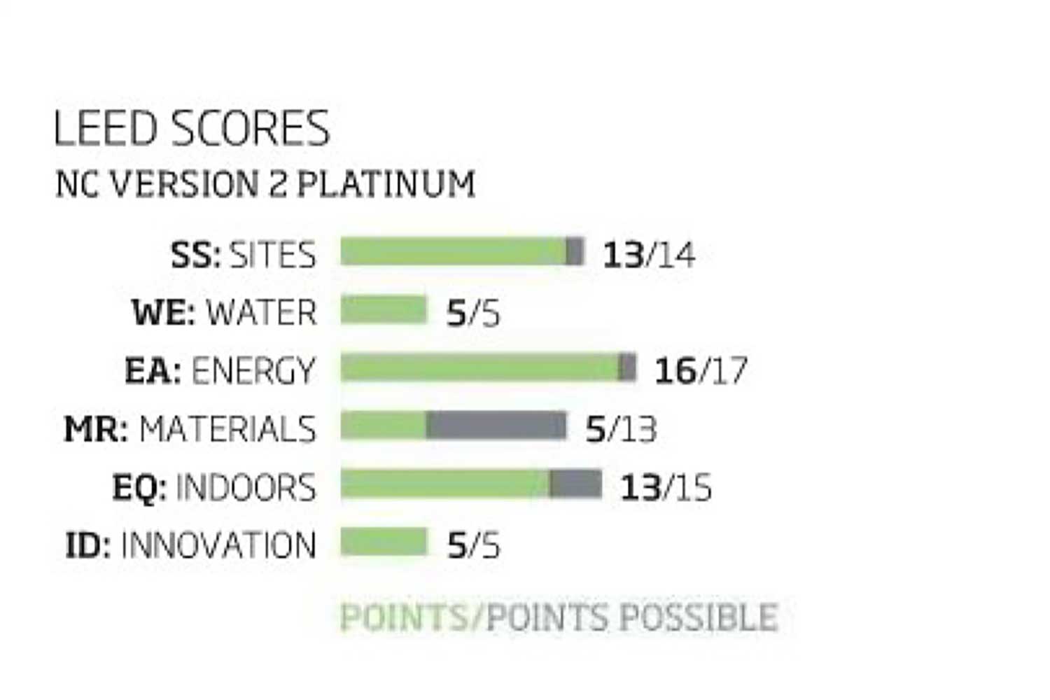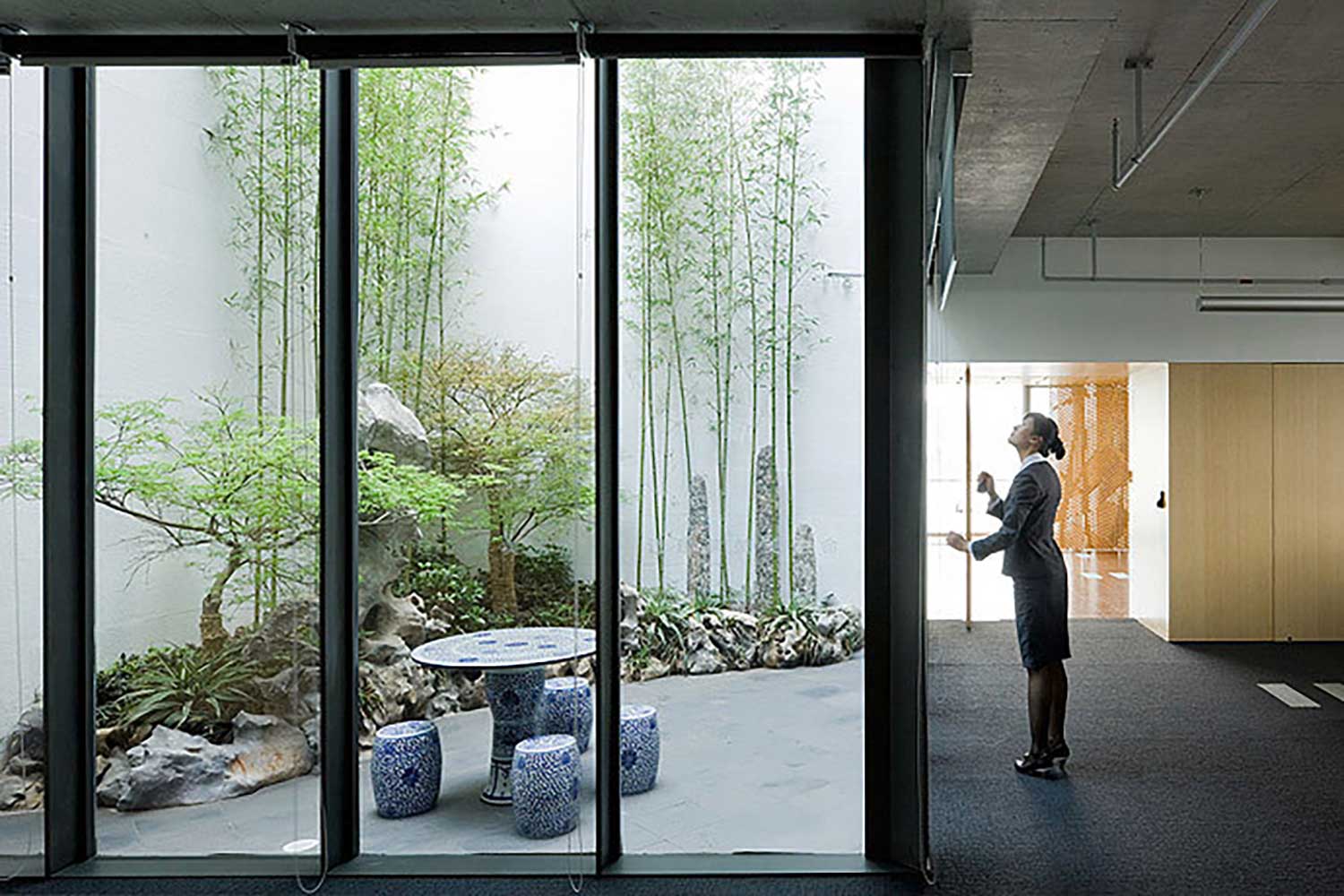 دفتر مرکزی شرکت Vanke یکی از نخستین ساختمانهای دارای گواهینامه LEED Platinum در چین است. ۱۵٬۰۰۰ فوت مربع پنل خورشیدی بر بام آن نصب شده که ۱۲.۵ درصد از برق مورد نیاز مجموعه را تأمین میکند. سیستم لوورها که شامل پرههای ثابت و متحرک با حفرههایی با ابعاد مختلف است، با کمک حسگرها و رایانه، بر اساس زاویه و شدت تابش خورشید تنظیم میشود و ۷۰ درصد از گرمای خورشیدی را کاهش میدهد.