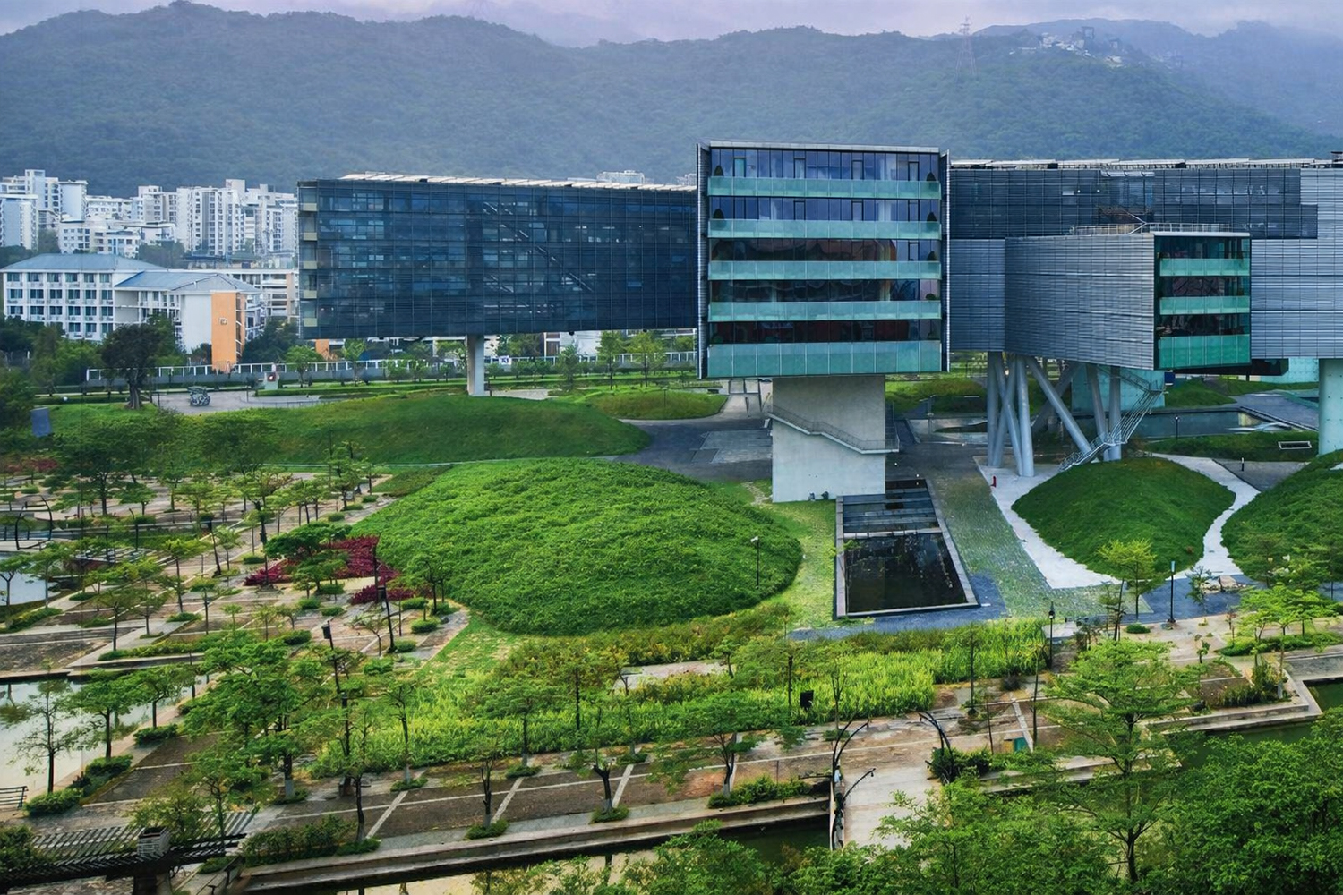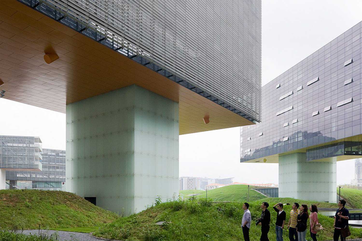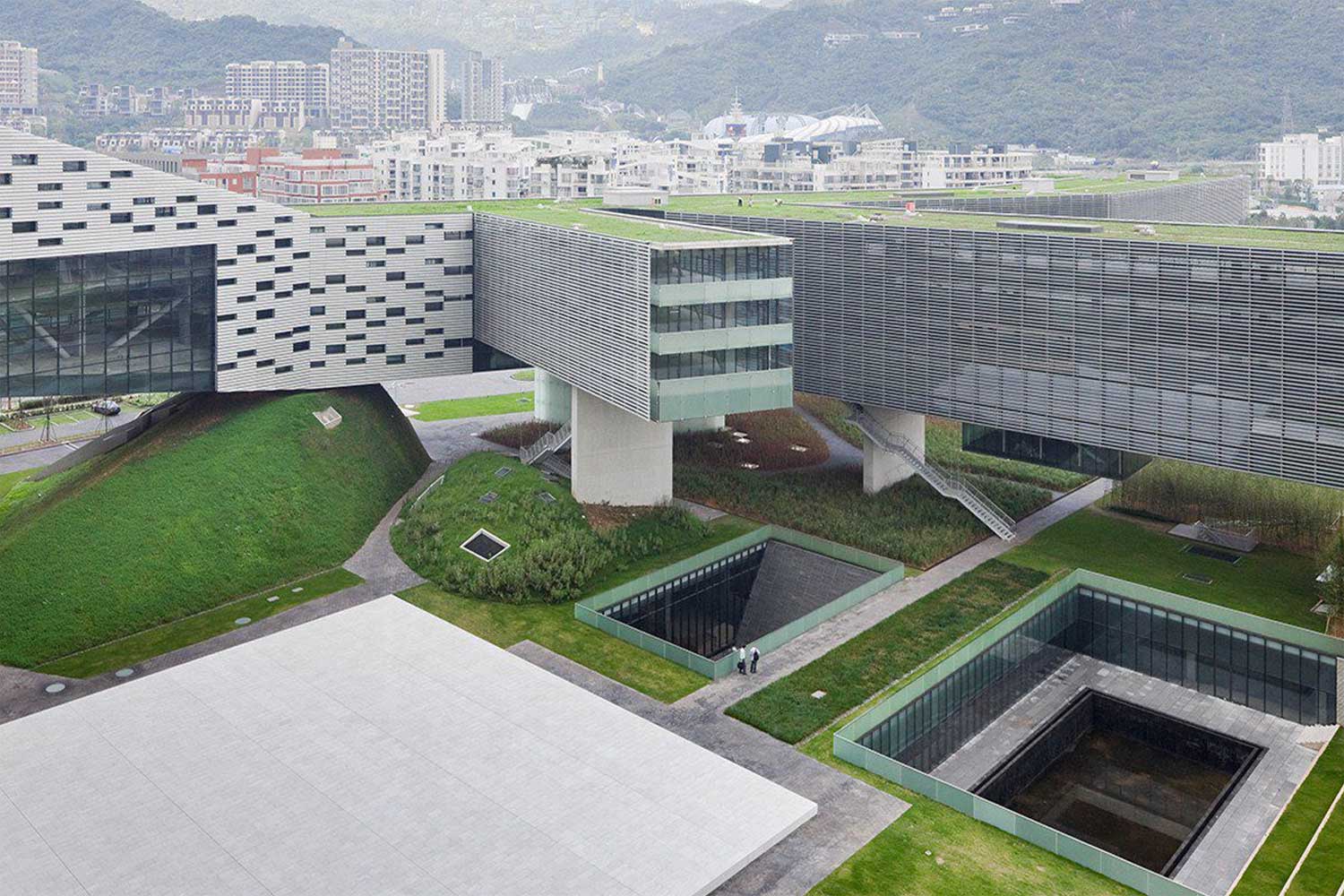 Three decades of breakneck economic development have made China one of the world’s great polluters, but a new green ethos is beginning to take root in the Land of 1.3 Billion People. Not only is the Chinese government moving to reduce carbon dioxide emissions and encourage alternative energy production, but a growing number of Chinese companies are demonstrating a strong commitment to sustainable design. A leader of this movement is China Vanke, the country’s largest residential developer and a company that has hired innovative architects from China and abroad to design a number of projects. Its founder and chairman, Wang Shi, has made a name for himself not only as an entrepreneur, but as a mountain climber (he has reached the summit of Mt. Everest twice) and dedicated environmentalist. So it is not surprising that Vanke wanted its headquarters in Shenzhen to embody the highest green values. Designed by Steven Holl Architects, which completed its Linked Hybrid residential complex in Beijing in 2009 and is busy working on large-scale projects in Chengdu, Hangzhou, and Nanjing, the 1.14-million-square-foot Vanke headquarters hovers 50 feet above the ground—a “horizontal skyscraper” that is a bit longer…