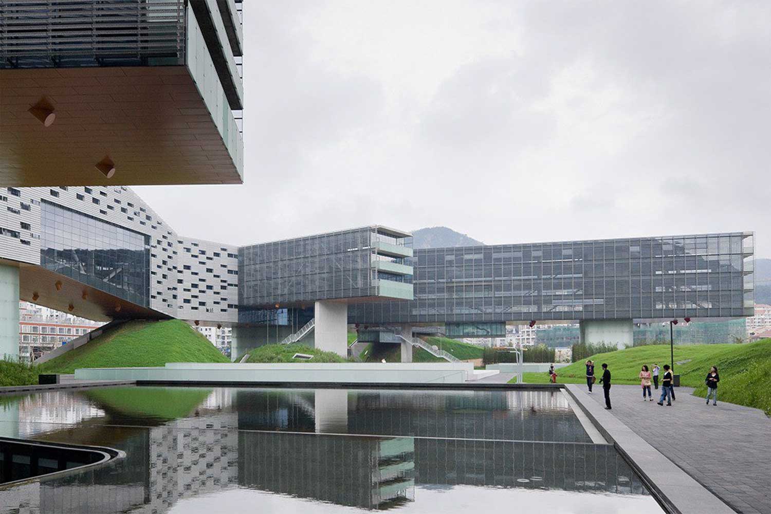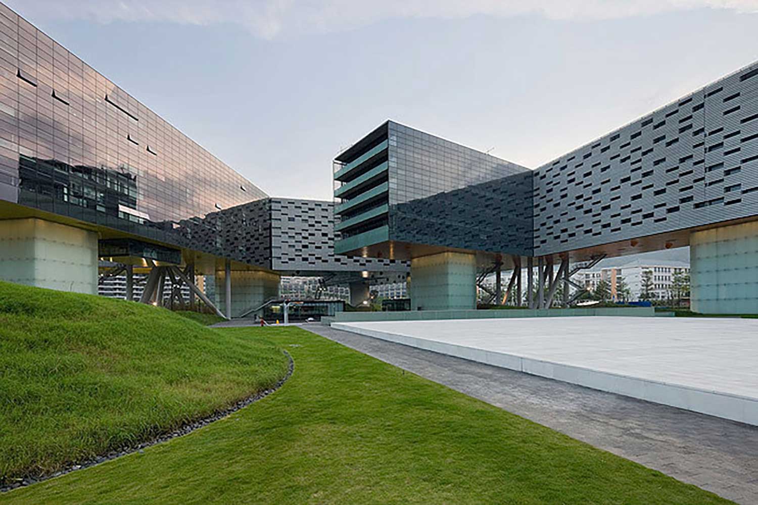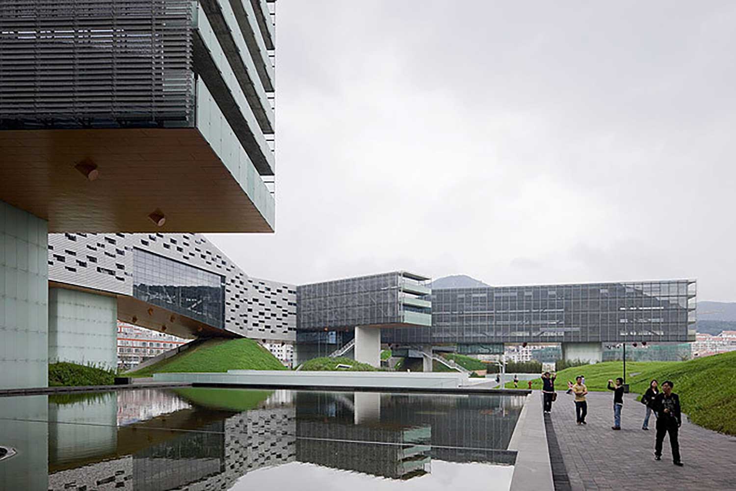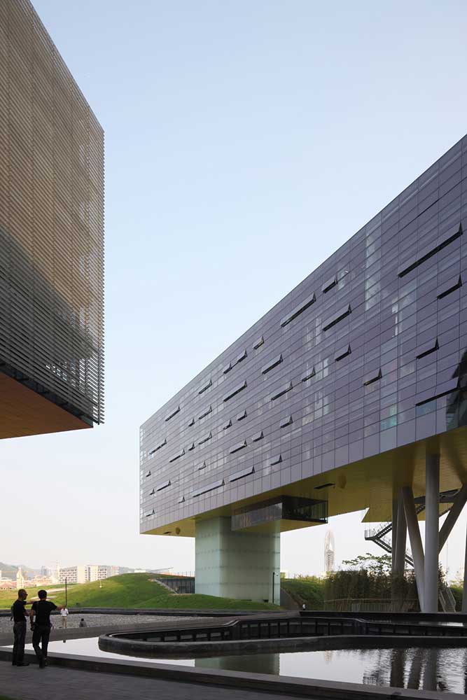 Three decades of breakneck economic development have made China one of the world’s great polluters, but a new green ethos is beginning to take root in the Land of 1.3 Billion People. Not only is the Chinese government moving to reduce carbon dioxide emissions and encourage alternative energy production, but a growing number of Chinese companies are demonstrating a strong commitment to sustainable design. A leader of this movement is China Vanke, the country’s largest residential developer and a company that has hired innovative architects from China and abroad to design a number of projects. Its founder and chairman, Wang Shi, has made a name for himself not only as an entrepreneur, but as a mountain climber (he has reached the summit of Mt. Everest twice) and dedicated environmentalist. So it is not surprising that Vanke wanted its headquarters in Shenzhen to embody the highest green values. Designed by Steven Holl Architects, which completed its Linked Hybrid residential complex in Beijing in 2009 and is busy working on large-scale projects in Chengdu, Hangzhou, and Nanjing, the 1.14-million-square-foot Vanke headquarters hovers 50 feet above the ground—a “horizontal skyscraper” that is a bit longer…