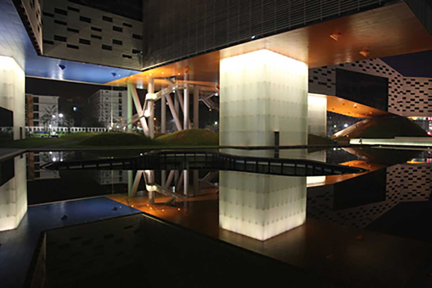 Winding landscaped mounds, serene ponds, and cafés, inspired by Robero Burle Marx’s tropical gardens.