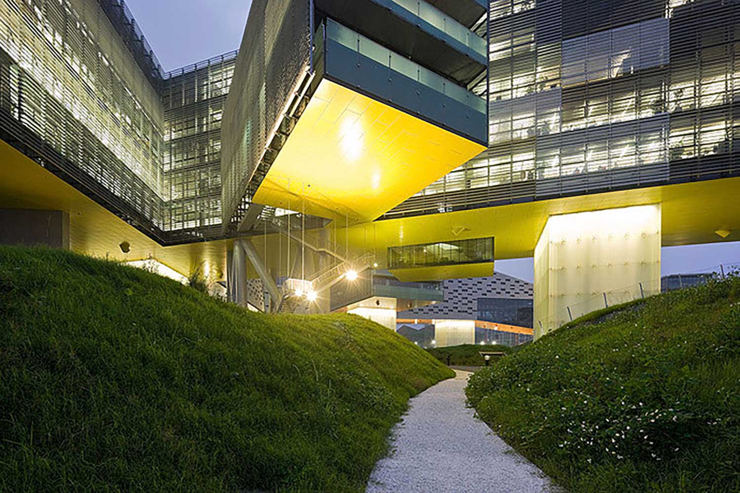 - The architects treated each of the building’s 26 facades differently to strike the right balance between solar protection and transparency.