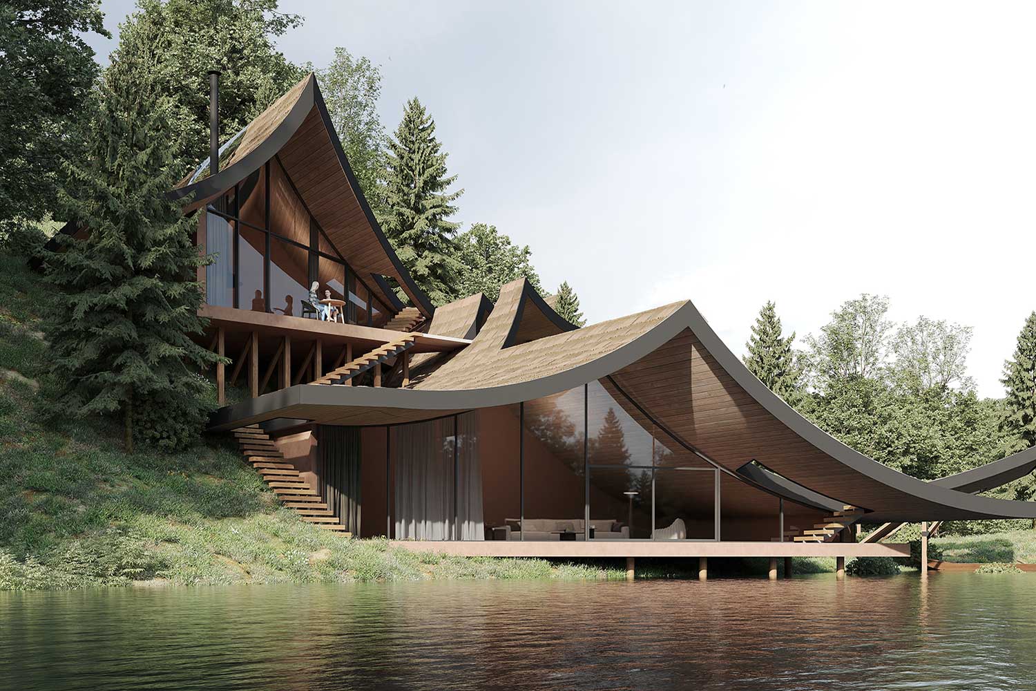 LAT Eco-Lodge is a context-driven mountain retreat on the northern hillside with minimal site impact. Modular units emerge organically from the terrain. Parts of each sloped roof serve as shared terraces for upper units, echoing vernacular terraced settlements. Built with glulam timber and native “Lat” technique, roofs are insulated with local “Foush” soil, which compacts and becomes more impermeable with foot traffic. The project links landscape, material culture, and spatial continuity.