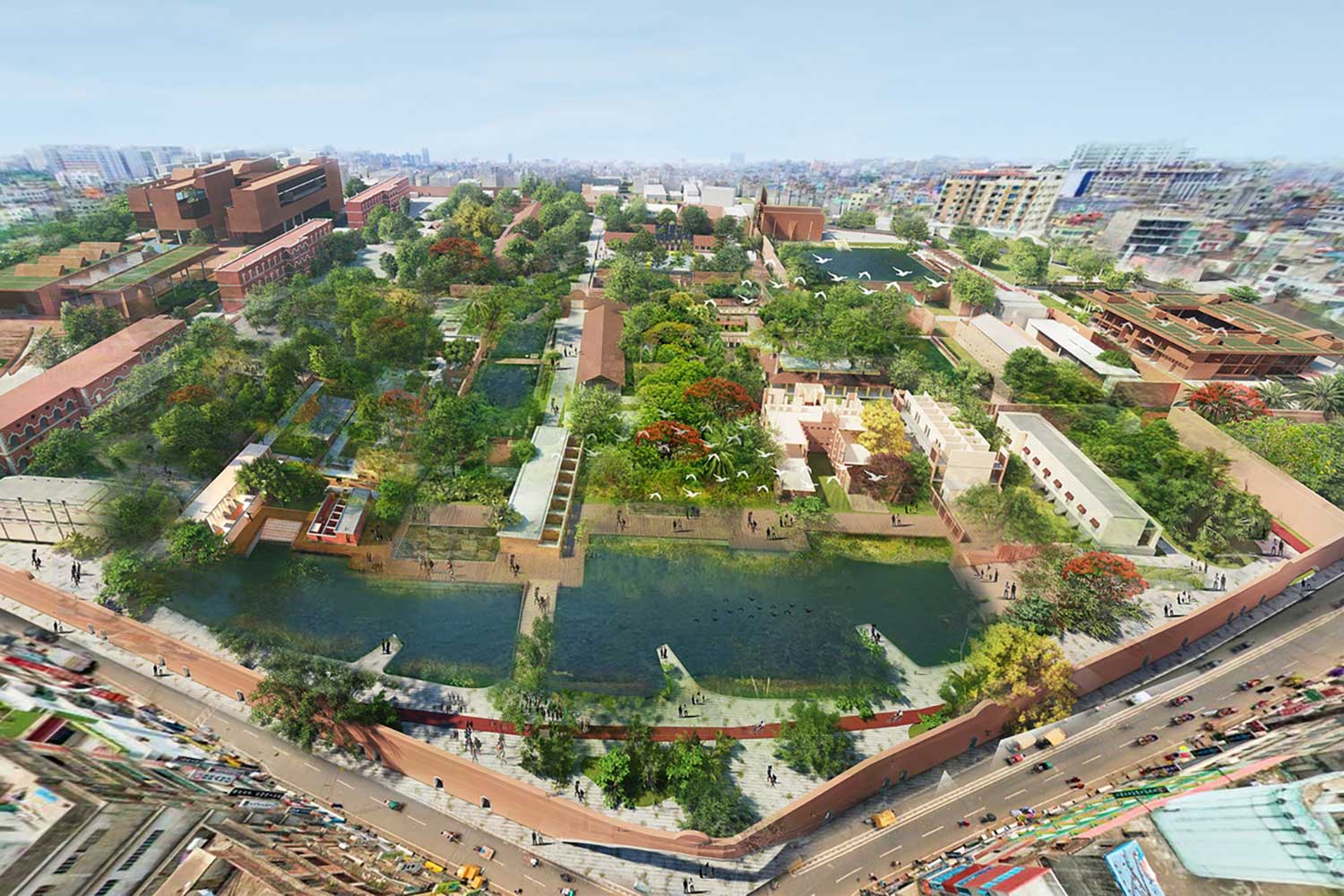 این پروژه، سایت تاریخی و متروکهی زندان مرکزی داکا را به فضایی عمومی و در دسترس بدل میکند که در بافت فشردهی شهر تنیده شده است. با بهرهگیری از راهکارهای سرمایش غیرفعال، بازاستفادهی سازگار سازههای موجود و مداخلات پایدار در منظر، پروژه قصد دارد مصرف انرژی را کاهش دهد و تنوع زیستی را تقویت کند. روند برنامهریزی مشارکتی با حضور صنعتگران محلی، تکنیکهای سنتی همچون گچ آهکی و پنجرههای مشبک چدنی را حفظ کرده و پیوستگی فرهنگی را تقویت میکند. مجموعهی احیاشده شامل موزهها، فضاهای خردهفروشی و فضاهای تفریحی است که پایداری اقتصادی را تضمین میکند. ساختمانهای جدید با الهام از معماری بومی، گفتوگویی سازنده میان میراث تاریخی و کارکردهای معاصر ایجاد مینمایند. “هیئت داوران APAC اثر را بهخاطر تأثیر مثبت گستردهاش در بافت فوقالعاده متراکم شهری ستود؛ پروژه مکانی را از «مجازات» به فضایی برای «لذت و تجربهی زندگی شهری» بدل میکند. داوران جامعبودن طرح را تحسین کردند: حفظ و مرمت سازههای تاریخی، افزودن بناهای جدید با مقیاس مناسب، و حتی ادغام یک خیابان عمومی برای کاهش ترافیک—همه بدون چشمپوشی از نیازهای جامعه.”
