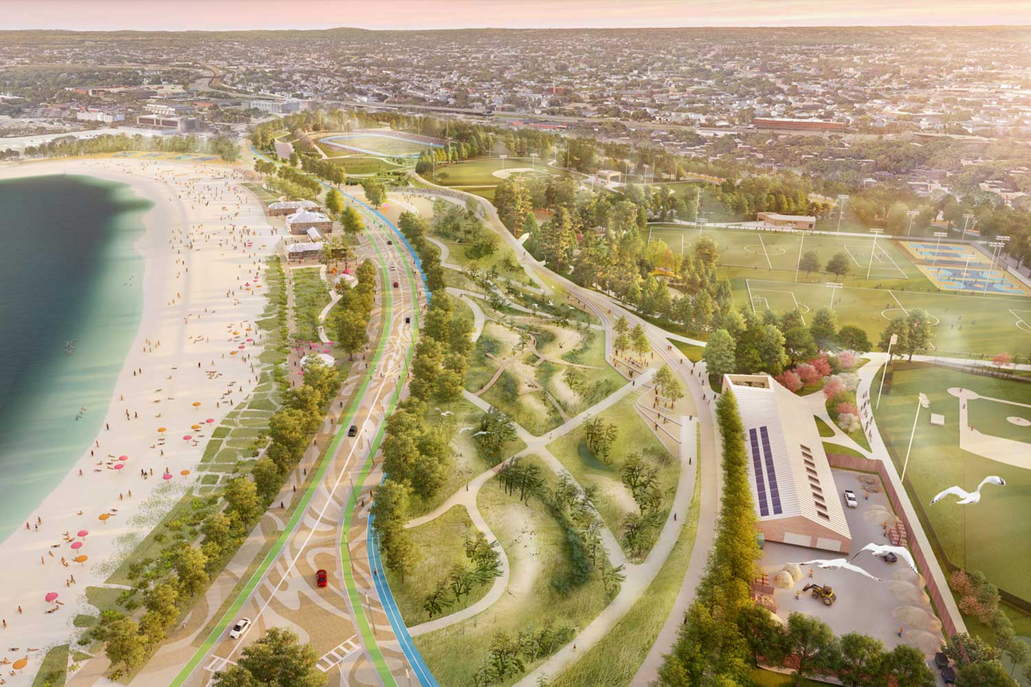 Moakley Park reimagines one of Boston’s largest waterfront areas as a resilient and accessible public landscape. The project incorporates protective berms, restored coastal marshes, and stormwater management systems to reduce flood risk and support biodiversity. More than 500 new trees and extensive native plantings help mitigate urban heat while strengthening local ecological habitats. Developed through comprehensive community engagement, the plan reflects neighborhood priorities and expands equitable access to recreational spaces. Supported by public-private partnerships and income-generating programs, it contributes to economic and social stability. The project offers a scalable model for climate adaptation, urban resilience, and community wellbeing. “The jury recognized this ambitious yet pragmatic design as a transformative model for urban resilience. Embracing a participatory approach, including thousands of community interactions, the project adeptly addresses Boston’s coastal vulnerability, providing equitable access to inclusive public spaces. The project demonstrates intelligent integration of landscape architecture and stormwater management, with the living shoreline and adaptive berm strategies standing out as exemplary approaches to urban flood defense.”