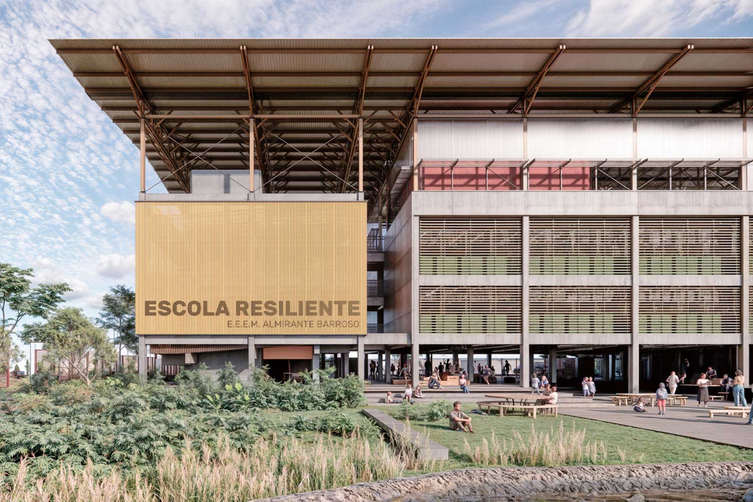 این پروژه الگویی نو برای زیرساخت آموزشی عمومی در مناطق سیلابخیز آمریکای لاتین ارائه میدهد؛ الگویی که «همراه با طبیعت» طراحی میشود، نه در برابر آن. کلاسها، آزمایشگاهها و کتابخانهها در تراز بالاتر ساخته میشوند و طبقهی همکف سیلگیر به زمینبازی و فضای ورزشی روباز تبدیل میشود. تراس سایهدار بام، فضای آموزشی بیرونی فراهم میکند و در مواقع بحرانی، نقش پناهگاه اضطراری برای جامعهی پیرامون را ایفا میکند. بهرهگیری از مصالح محلی و راهکارهای غیرفعال، این طرح را به الگویی مقیاسپذیر و سازگار برای مدارس تابآور در برابر تغییرات اقلیمی تبدیل کرده است. “داوران اشاره کردند که چگونه مداخلات سادهی طراحی میتواند با ظرافت مشکلات پیچیده را حل کند—رویکردی که احتمالاً الهامبخش بسیاری از شهرهای آسیبپذیر خواهد بود. اثبات اینکه یک مدرسهی ساده میتواند هوشمندانه با واقعیتهای اقلیمی تطبیق یابد، این پروژه را به نقشهای قابل انتقال برای ساختوساز پایدار در سراسر منطقه بدل کرده است. هیئت داوری همچنین تمرکز پروژه بر آموزش عمومی و نقش الهامبخش آن برای دانشآموزان را برجسته کرد.”