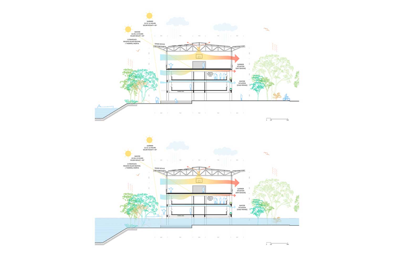 This project proposes a new approach to public education infrastructure in Latin America’s flood-prone regions by designing with, rather than against, natural conditions. New classrooms, laboratories, and libraries are elevated above the existing school, while the flood-prone ground level is reconfigured as an open-air playground and sports area. A shaded rooftop terrace provides additional outdoor learning space and also functions as an emergency shelter for the surrounding community, expanding the school’s role during crises. Using local materials and passive strategies, the project offers an adaptable and scalable model for resilient educational facilities in vulnerable contexts. “Jurors noted how the project’s simple design interventions elegantly solve complex problems – a concept likely to influence many other towns facing similar challenges. By proving that a modest school can be innovatively adapted to climate realities, this project provides a transferable blueprint for sustainable construction in vulnerable regions across Latin America and beyond. The jury was also impressed by the project’s commitment to public education, highlighting its role in inspiring students to face future challenges.”