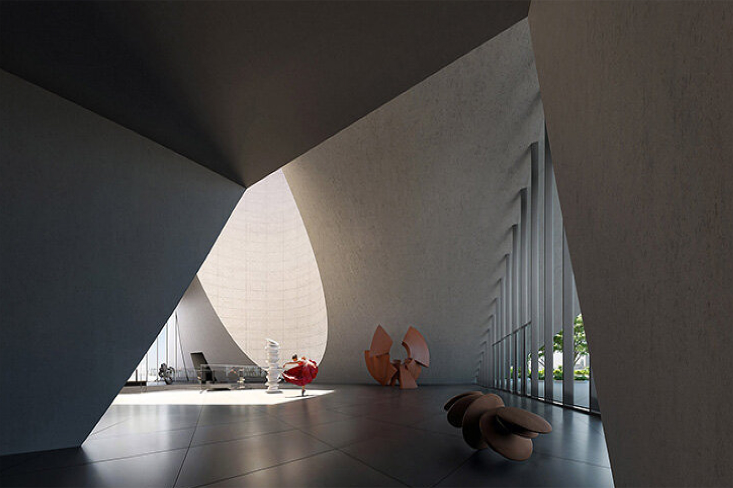 معمار نمادین ژاپنی، تاداو آندو، طرحهای خود را برای موزه هنر دبی که به عنوان یک نهاد فرهنگی جدید در حال ساخت است، معرفی کرده است. این ساختار یکپارچه و گرد به طور شناور در لبهی خلیج دبی قرار خواهد گرفت، روی یک سکوی دایرهای، سطح بتنی سیال آن بهطور پیچیدهای به سمت یک ورودی شیشهای میچرخد که نور بیابان را جذب میکند.
