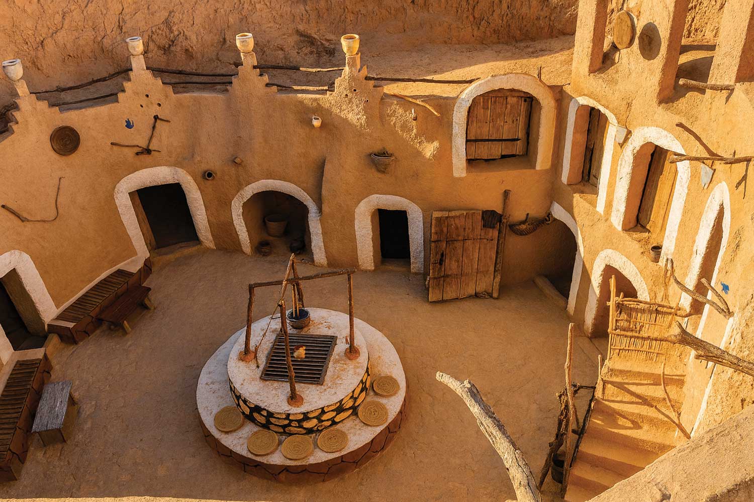 انواع دیگر فرمهای خانههای «ابتدایی» تا حدی تحت تاثیر واقعیتهای قدرتمند محیطی مانند توپوگرافی، آبوهوا، دسترسی به مصالح و به ویژه اقلیم تعیین میشوند. ایگلوهای ساختهشده از برف شناختهشده هستند، اما خانههای زیرزمینی ماتماتا (Matmata) در صحرای ساهارا کمتر شناخته شدهاند. خانه ماتماتا از یک حیاط مرکزی تشکیل شده است؛ گودالی عمیق و باز که در دل صحرای شنی حفر شده و دسترسی به اتاقهای اطراف که کاملا زیرزمینی هستند را فراهم میکند. یک تونل ورودی طولانی و شیبدار به حیاط مرکزی دسترسی میدهد. این طرح زیرزمینی نیازی به مصالح اضافی ندارد و عایقبندی در برابر گرمای روز و سرمای شدید شب را فراهم میکند.