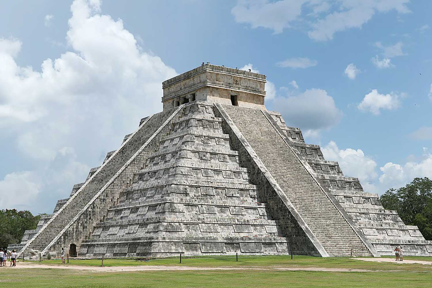 بنای موسوم به «قلعه» (El Castillo) در چیچنایتزا (Chichén Itzá) ـ که در واقع نامگذاری نادرستی است ـ به همان دوره تعلق دارد (تصاویر 1.25 و 1.26). در حقیقت، این بنا معبدی برای کوکولکان (Temple of Kulkulkan) است؛ هرمی پلکانی با ابعاد 180 فوت مربع و ارتفاع 78 فوت که در بالای آن معبدی قرار دارد. طرح داخلی آن بر اساس «نسبت طلایی» (Golden Mean) شکل گرفته است؛ بهگونهای که دیوارها طوری جایگذاری شدهاند که فضاهای پیرامونی با تالار مرکزی در نسبت 1:0.618 قرار میگیرند.