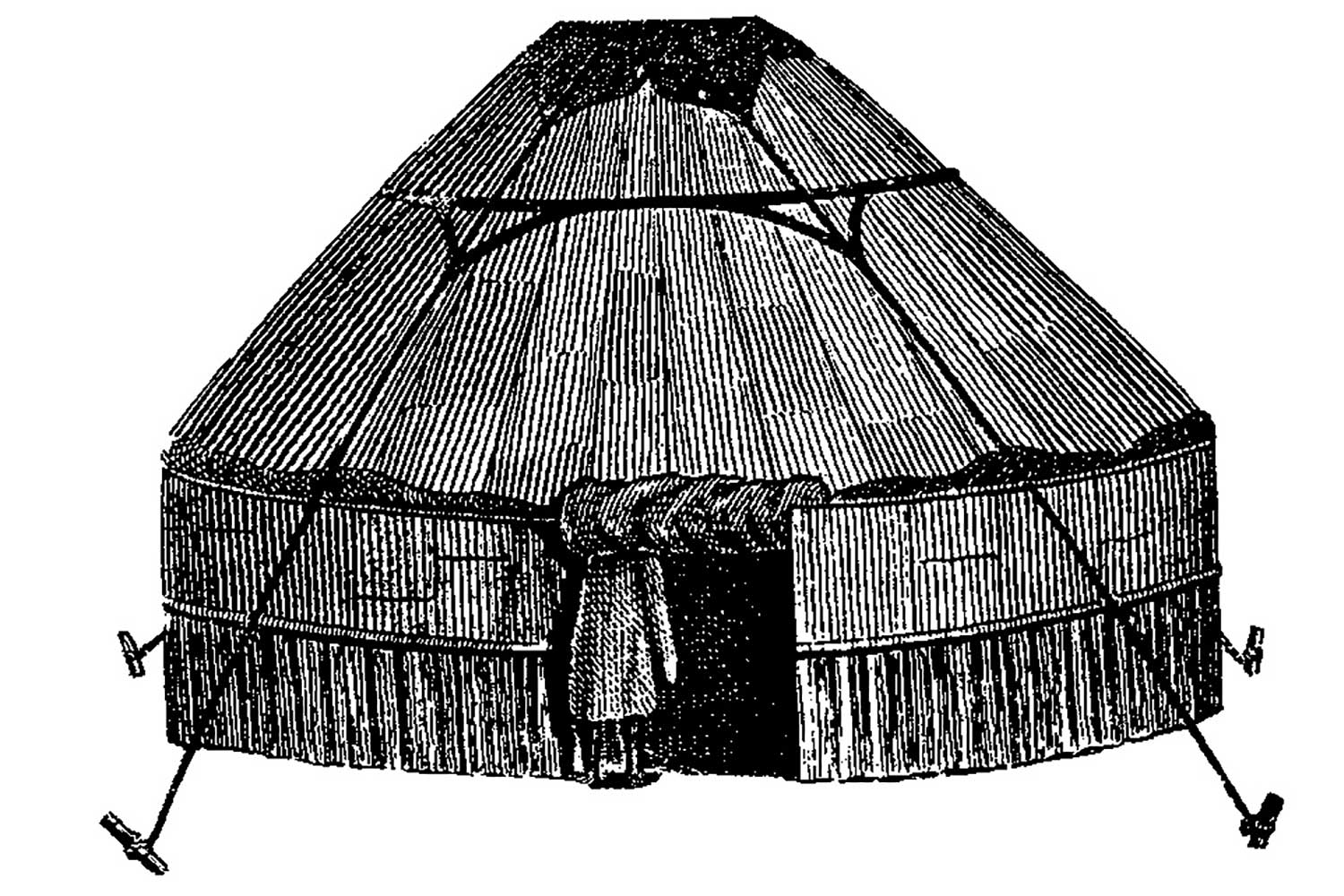 1.5: خانههای یورت، تصویرسازی یک یورت مغولی (An engraving of a Mongolian yurt)