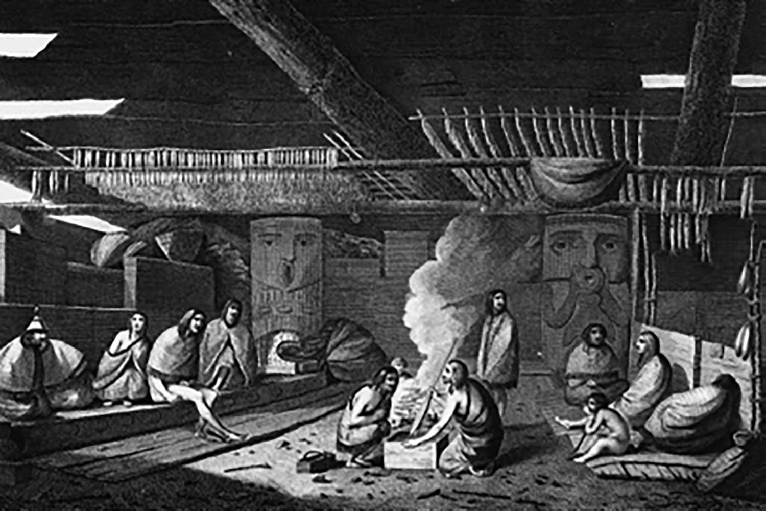 1.8: جان وبر، طراحی از فضای داخلی یک خانه در نوتکا ساند، کانادا (John Webber, engraving of the interior of a house in Nootka Sound, Canada)