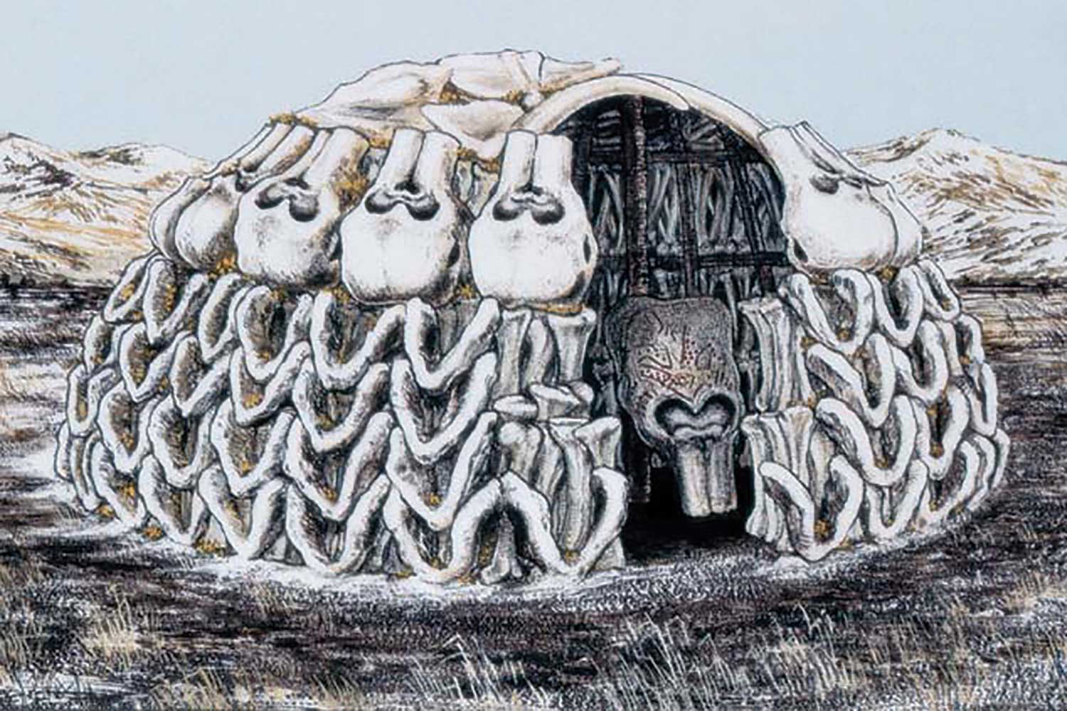 1.11: (بازسازی سازهی استخوان ماموت، Mezhirich، اوکراین، c. 15,000)