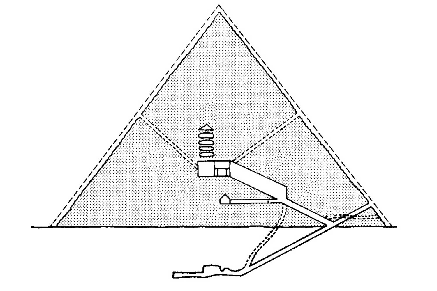 1.31: مقطع عرضی هرم بزرگ جیزه (Cross-Section of the Great Pyramid at Giza)، مصر (Egypt)، حدود 2550–2480 پیش از میلاد (B.C.E.)