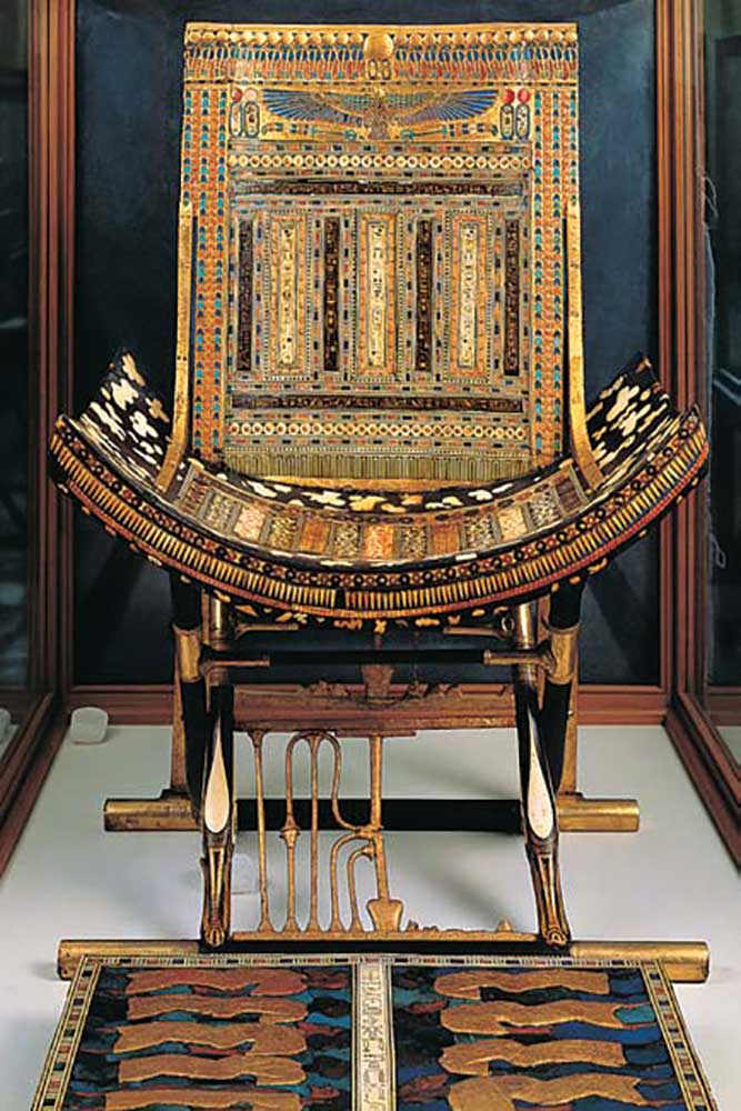 1.36: تخت آیینی (Ceremonial Throne) از مقبرهی توتعنخآمون (Tutankhamen)، حدود 1345–1325 پیش از میلاد