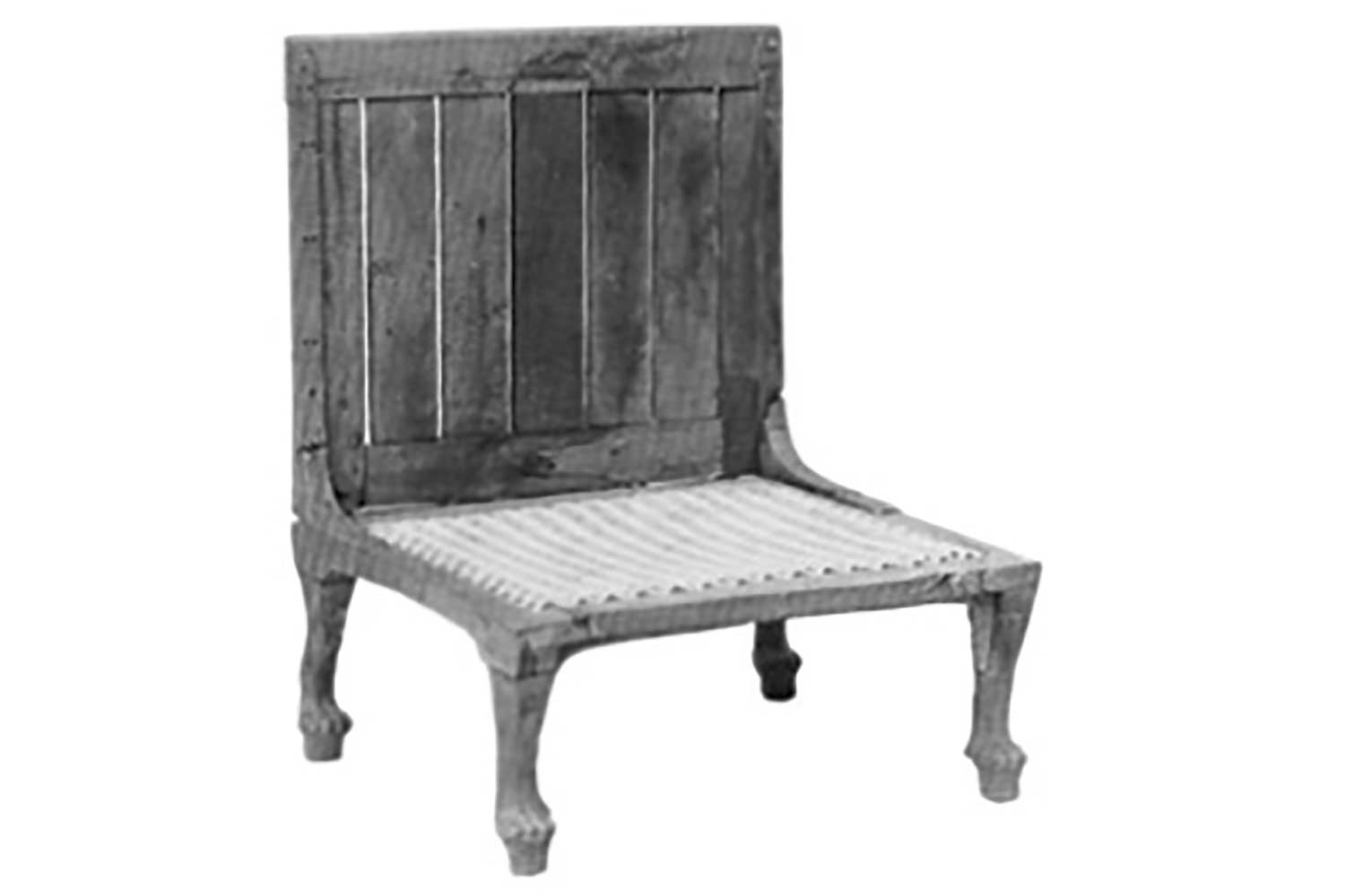 این صندلی چوبی با اتصالاتی زیبا ساخته شده است (با ابزارهای سنگی). پشتی پهن و نشیمن آن با حصیر نی بافته شده است. ارتفاع کوتاه صندلی نشان میدهد که نشستن چهارزانو رایجترین شیوهی نشستن در آن زمان بوده است.