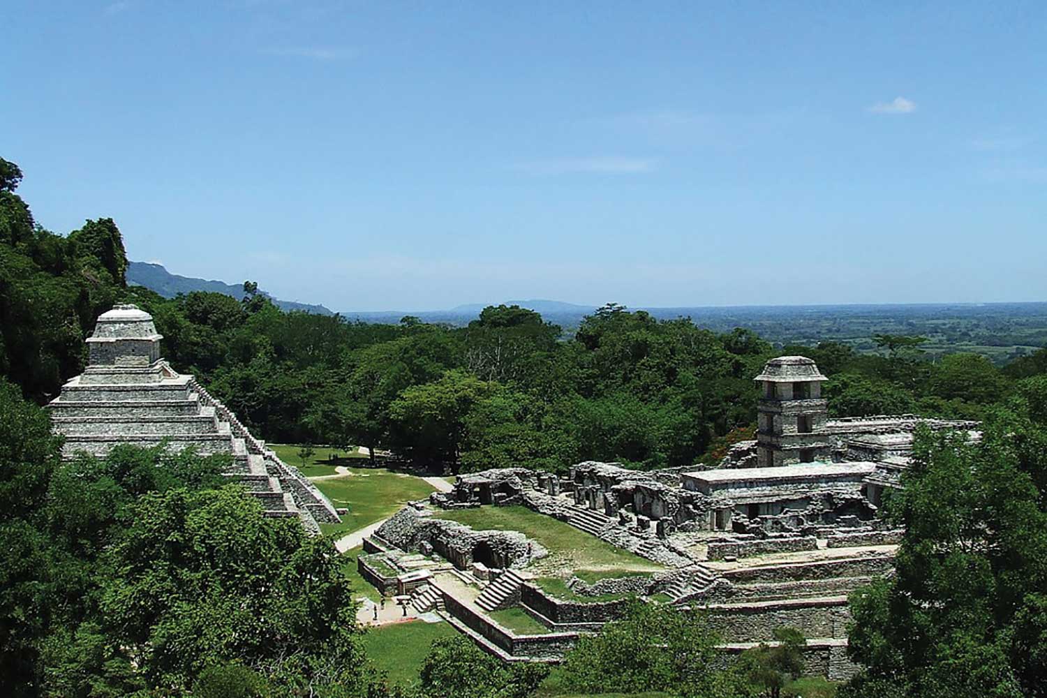 بسیاری از محوطههای مایایی (Mayan Sites) در شبهجزیرهی یوکاتان (Yucatán Peninsula) مکزیک باقی ماندهاند. در پالِنکه (Palenque)، «معبد کتیبهها» (Temple of the Inscriptions) بر فراز یک هرم پلکانی (Stepped Pyramid) که به دورهی 700–800 میلادی تعلق دارد، همچنان پابرجاست (تصویر 1.20). فضای داخلی آن شامل چندین تالار است و یک پلکان مخفی به سوی اتاق تدفین در زیر ساختار هرم پایین میرود.