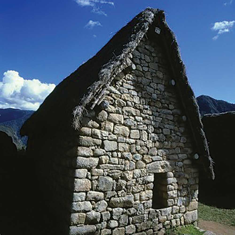 خانهی معمولی اینکاها، چه در ماچو پیچو (Machu Picchu) و چه در دیگر نقاط، اتاقی مربعشکل بود با دیوارهایی از خشت (Adobe) و سقفی از کاهگل (Thatch). در دیوارهای خشتی، طاقچههای توخالی برای نگهداری ظروف و اشیایی تعبیه شده بود که هم کارکردی و هم تزئینی بودند. سازههای سنگی خانههای ماچو پیچو سبب شدهاند که بخشی از آنها باقی بمانند، هرچند سقفها از بین رفتهاند (جز یک نمونهی بازسازیشده، تصویر 1.29).