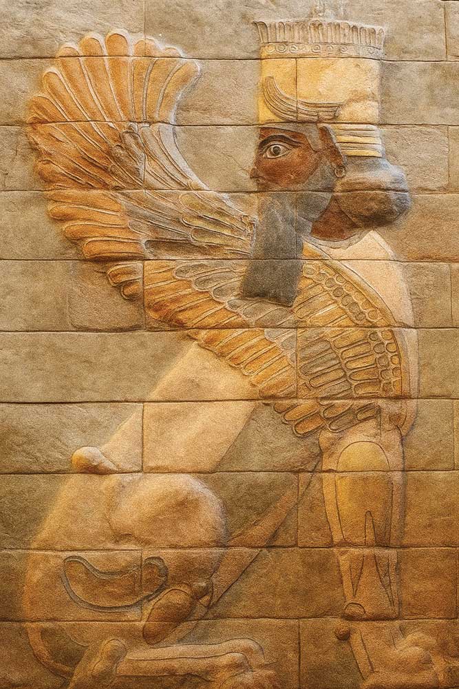 این تصویر نمایی از نقشبرجستههای سربازان جاویدان (Immortals) هخامنشی در پلکان کاخ آپادانا (Apadana Palace) در تختجمشید (Persepolis) است. این ردیف سربازان با آرایش منظم و تکرارشونده، نمادی از شکوه، انضباط و قدرت نظامی شاهنشاهی هخامنشی به شمار میرود. چنین ترکیبهای تکراری و منظم، علاوه بر کارکرد تزئینی، حامل پیام سیاسی ـ ایدئولوژیک دربارهی اقتدار شاه و نظم جهانی مدنظر او بودهاند.