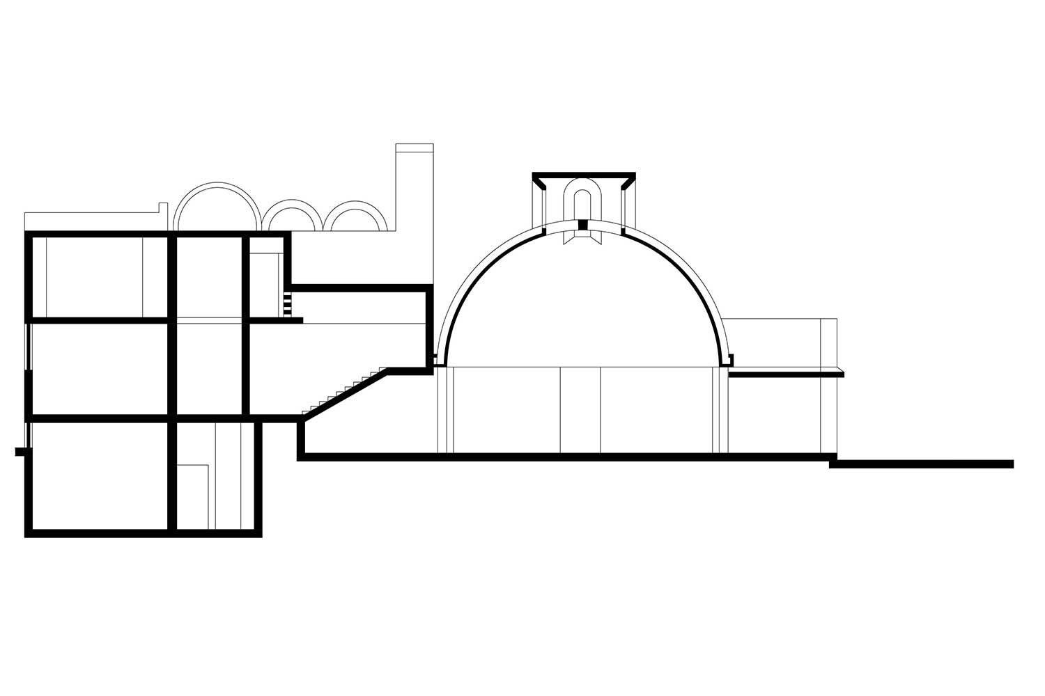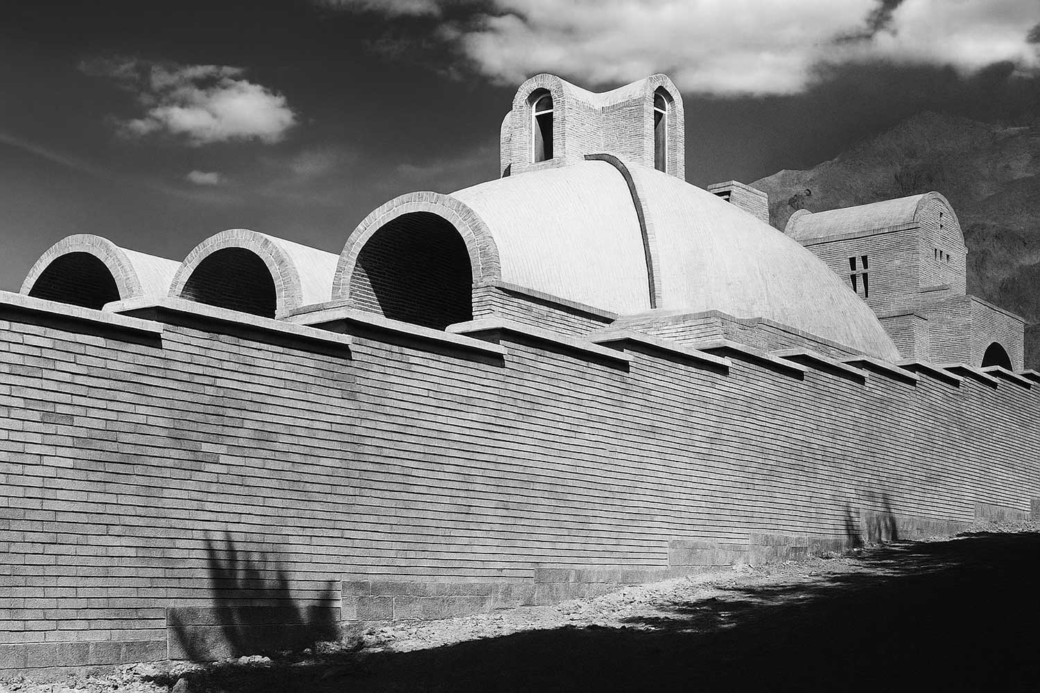 The pinnacle of Iranian architectural evolution prior to the Qajar era is most vividly evident in the desert-edge cities such as Yazd, Isfahan, and Kashan, where vaulted structures played an essential role in the architectural and spatial composition of buildings. (Cities like Tabriz, Tehran, Rasht, and Arak are generally regarded as fully developed only in the Qajar period.) Hence, in traditional Iranian architecture, curvilinear forms—in combination with horizontal and vertical lines—define the visual character of the structures. Seyhoun, in this project, sought to create a similar fusion of elements. By employing circular or semi-circular arches and avoiding pointed ones, he emphasized his departure from tradition as a mere act of repetition. The taller vertical masses rising beside the vaults evoke the combination of windcatchers and domed forms typical of cities such as Yazd and Na’in. In this way, Seyhoun masterfully transformed his long years of study and documentation of historical architecture into a fresh formal language.