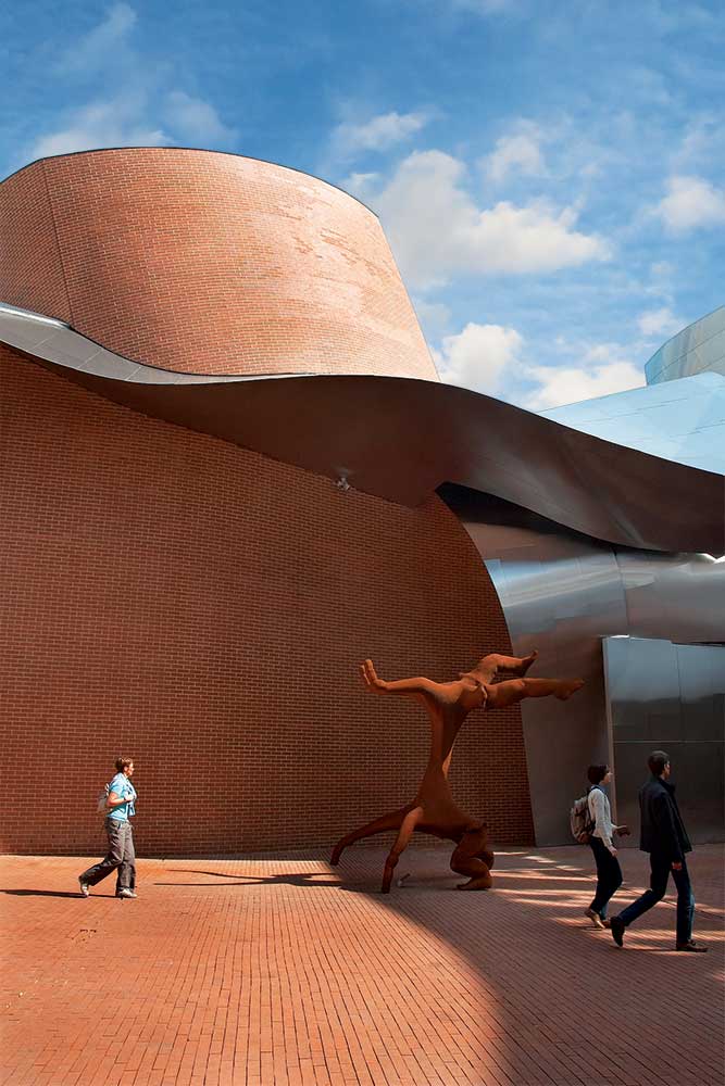 در دههی 1960، هنگامی که فرانک گهری تصمیم گرفت از مدرنیسم صلب و سختِ متأخّر (که در آن زمان، گرایش غالب بود) دست بردارد، هیچکس، و بیش از همه خود معمار، نمیدانستند راهی که او در پیش گرفته به کجا منتهی خواهد شد. گهری بیش از آنکه به عُرف یکنواخت و ملالآور «بازار» گردن بنهد، به دنبال ایجاد گفتوگویی خلاق با هنرمندان بود. آثار هنرمندانی چون مارک روتکو، که نقاشی هایش در عین انتزاعی بودن، بار روحی و معنوی نیرومندی دارند، گهری را متقاعد ساختند که حاصل معماری میتواند بسیار فراتر از تأمین نیازهای صرفاً کاربردی باشد. گهری از ابزار هنرمندان، بهویژه پیکرهتراشان، سود میجوید تا گونهای کلنگری و تکاملیافتگی ژرف در ساختمان های خود ایجاد کند که هیچگاه دچار یکنواختی و ملال نمیشود. گهری معماری است که آشوب و سراسیمهگی، ابتذال، سطحینگری شتابزده و عجولانه، و آفتاب جاودانی شهر خود، لوس آنجلس، را به شعر در میآورد. با اُفول پُستمُدرنیسم در اوایل دههی 1990، گهری شاخهی جدیدی ارائه کرد. او با دمیدن روحی تازه در پیکر بیجان مُدرنیسم، نشان داد اصلِ معروفِ «فُرم تابع عملکرد است»، که از مدّت ها پیش منسوخ شمرده میشد، میتواند به روش های بیشمار جدیدی مورد تفسیر و تعبیر قرار گیرد. وی علاوه بر آن، با مهارت از فنّاوری های جدید سود میجوید تا فُرم هایی اکسپرسیونیستی پدید آورد که تحقّقبخش دیدگاه های مکاشفهآمیز و آرمان شهری اوایل مُدرنیسم به شمار میآیند. گهری، مجهز به خلاقیتی پرشور، و درعینحال، قاطع و سازشناپذیر، به جستوجوهای بیپایان خود برای یافتن راه حل های نو ادامه میدهد. معماری برای او دغدغهای است همیشگی.
