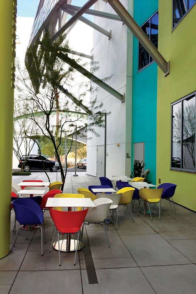 گهری در طول دههی 1970 بیش از پیش خود را از خشکی و جمود اواخر مُدرنیسم دور میکرد. و اما پاسخ او؟ «معماری ناخنخشک» عبارت بود از کُلاژی ساختهشده از مصالح «خِرت و پِرت». بهترین تجربه و آزمایش او در این عرصه، شاید در خانهی شخصیاش در سانتا مونیکا (1978-1977/1994-1991) باشد. گهری در اینجا، فارغ از عُرف و انتظار، رویکردی را نسبت به مقولهی طراحی از خود به نمایش گذاشت که راه را برای پروژههای آیندهی او هموار کرد. کُلاژِ ساختهشده از تختهی چندلای رنگنشده، توری سیمی، فلز موجدار و قاب های چوبی نمایان، در نگاه نخست، بیبرنامه و حتی مخرب به نظر میرسد. ولی با بررسی بیشتر معلوم میشود که هیچ چیز در اینجا به عهدهی تصادف رها نشده است. اتصالات ناپیدا، تغییرات ناگهانی مصالح، آسفالت کف آشپزخانه، همهی اینها گزینههایی آگاهانه و سنجیده هستند که واکنش گهری را در قبال فرهنگ آشفتهی لوس آنجلس در قالب معماری بیان میکنند. این خانهی شخصی که خیلی زود با تحسین ها و جایزههای پرشمار روبهرو شد، نقطهی آغازی بود برای طراحی های مسکونی دیگر. گهری با طرح هایش برای خانهی نورتن (1984-1982)، و مهمانسرای ؤینتن (1987-1982)، ایدههای معماری خود را به کمال رساند. در این پروژهها پیوسته بیشتر شاهد آن هستیم که حجم های ساختمانیِ مجزا، به قطعات گویا و متمایزی شباهت مییابند که ماهرانه با هم ترکیب شدهاند تا زندگی پیکرهوار و بیجانی را به وجود آورند. گهری علاوه بر خانههای شخصی، ساختمان های عمومی بسیار بزرگی نیز طراحی کرد که او را در میان دیگر معماران شهرها، به ستارهای درخشان تبدیل کردند. او از 1970 تا 1982 کار بازسازی و تبدیل آمفیتئاتر افسانهای هالیؤود باؤل (در هالیؤود) را به یک صحنهی تراز اول برای ارکستر فیلارمونیک لوس آنجلس بر عهده داشت. در 1980 او برای این بنا طرح آکوستیک کارآمدی ارائه داد که از کرههای صداشکنی تشکیل میشد که انگار در پیشصحن خمیدهی معروف بنا شناور بودند. این پروژه بود که بهویژه در میان مخاطبان خاص و کارفرمایان تجاری، برای او اعتبار و معروفیت به همراه آورد. سانتا مونیکا پْلِیس (1980- 1972)، بزرگترین پروژهی دههی 1970 گهری، به او امکان داد ایدههای نو خود را در پروژهای تجاری در ابعاد وسیع پیاده کند. پلههای ورودی جلوی ساختمان نسبت به خیابان عقب مینشینند تا میدانگاه ورودی متناسبی پدید آورند. به منظور کاهش تراکم و سنگینی بصری ساختمان و گنجاندن مقیاسات انسانی در آن، از عناصر ساختمانی مورب، در قالب تراس ها و اتاقک های سرباز استفاده شده است. فضای عمومی خیابان به صورت گذرگاه مسقف پرنوری تا داخل بنا امتداد پیدا میکند. نمای جنوبی سازهی پارکینگ، تصویری فراموشناشدنی از خود در ذهن بیننده بر جا میگذارد. گهری جلوی کل سازه که بیش از 90 متر طول دارد، توری سیمی آبیرنگی به ارتفاع چهار طبقه آویخته است. حروف عظیمی از جنس توری سیمی نقرهای نیز افزوده شدهاند تا نشانهای عظیم و نیمهشفاف برای بنا ایجاد کنند. پروژههای دانشکدهی حقوق لویولا (1998-1978)، موزهی هوافضای کالیفورنیا (1984-1982)، کتابخانهی فرانسیس هاؤارد گولدوین (Frances Howard Goldwyn Hollywood) در هالیؤود (1985-1982)، پروژهی اِجمار (Edgemar Retail Complex) (1988-1984) و پژوهشکدهی اطلاعات و علوم/ مهندسی کامپیوتری ایروین کالیفورنیا (ICS/ERF) (1986)، همگی به مجموعهی مجتمع های ساختمانی کُلاژمانند گهری تعلق دارند که او در آنها پیوسته رویکرد خود را تکامل میبخشد و بیش از پیش کیفیتی شاعرانه را وارد آثارش میکند. افزایش ابعاد پروژهها به او امکان میداد مجتمع هایی دهکدهمانند طراحی کند که فضاهای شهری فوقالعاده جالب توجهی را به وجود میآوردند. در همان حال، او همانند موسیقیدان بدیههپرداز جَز که به دنبال پیدا کردن «یک نت صحیح» است، مدام مصالح مورد استفادهی خود را محک میزد و مورد بازبینی قرار میداد. جزئیات پیراستهتر و استوارتر شدند، ولی حال و هوای کلی بناها، همچنان بدیههپردازانه و ترکیبی باقی ماندند. گهری در اواسط دههی 1980 در سراسر آمریکا مقبولیت یافته بود. مؤسسهی روانپزشکی یِیل (1989-1985)، 