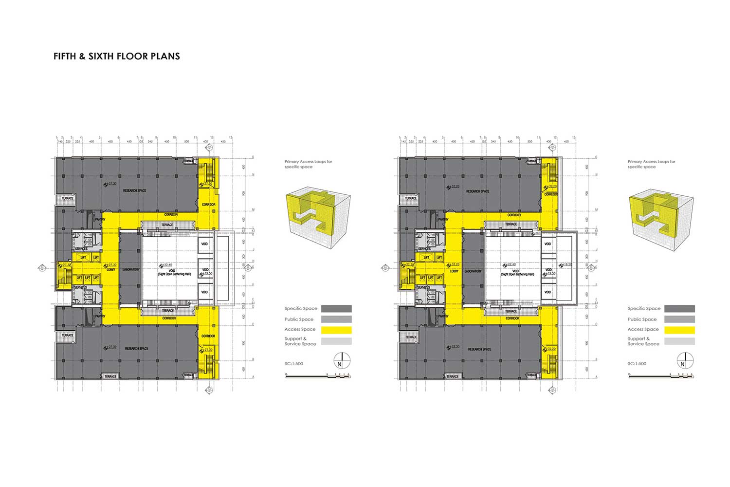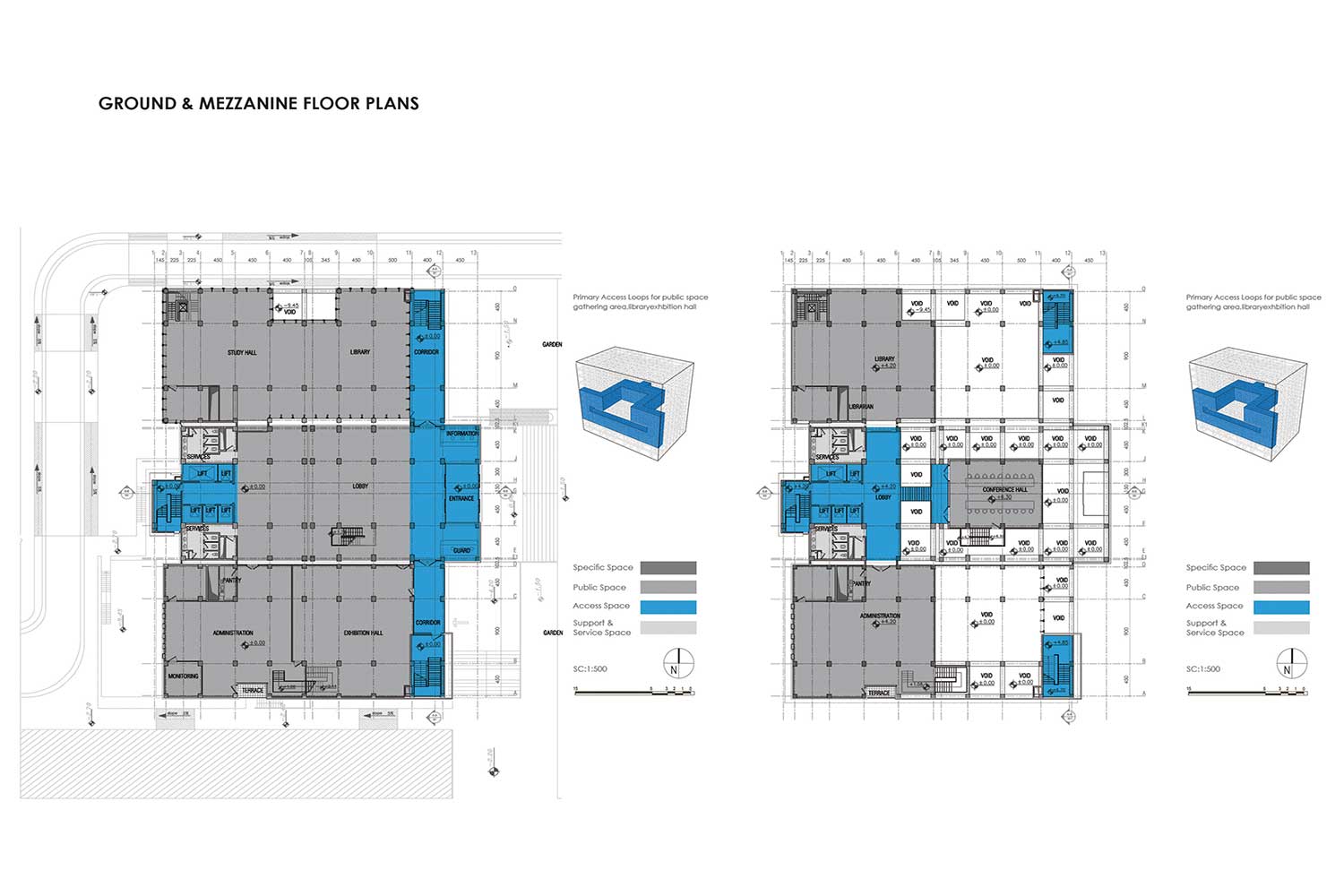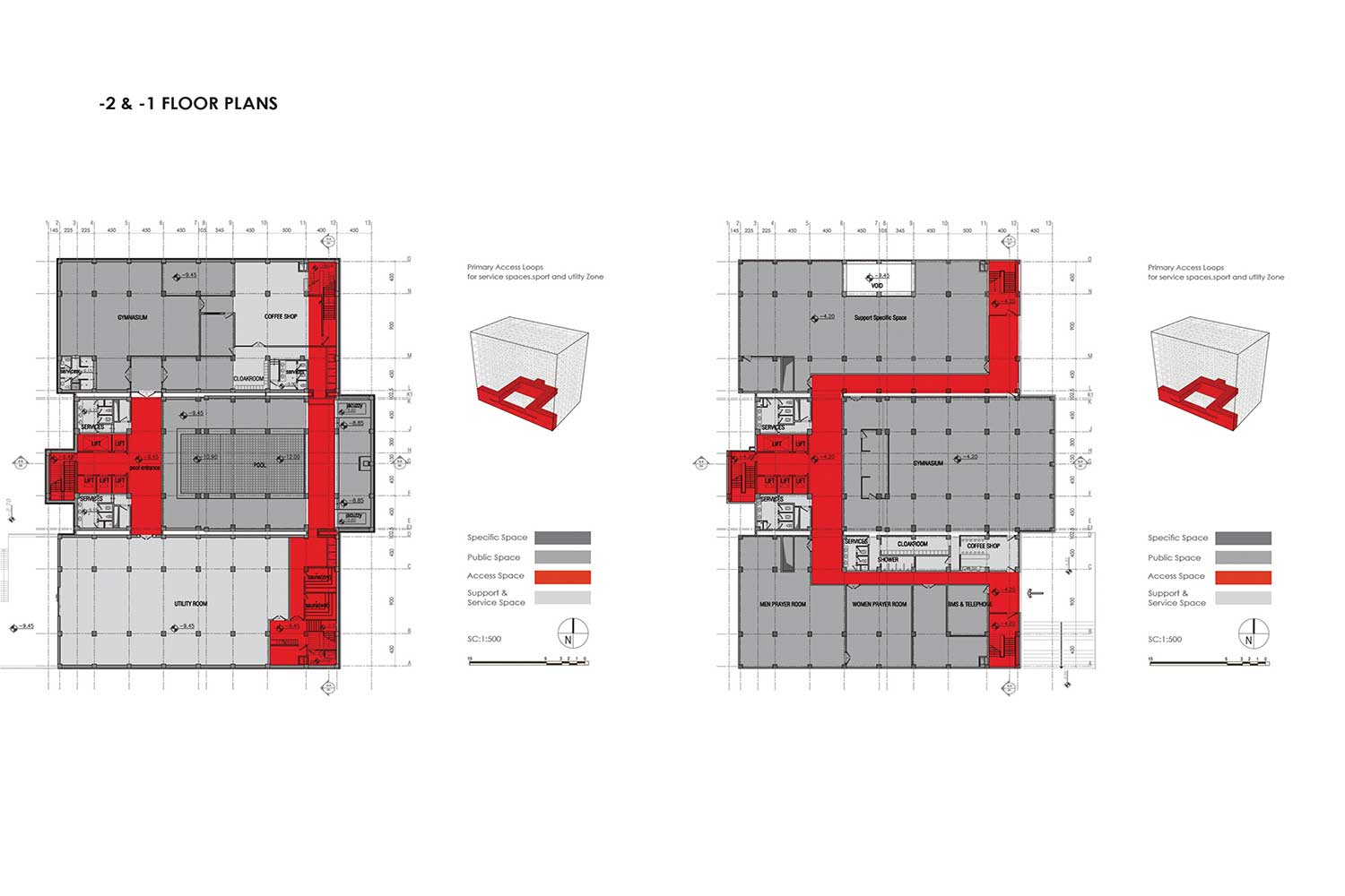 - Support Services Areas: Utilities, Elevators, Toilets, Pantries, Prayer halls.
