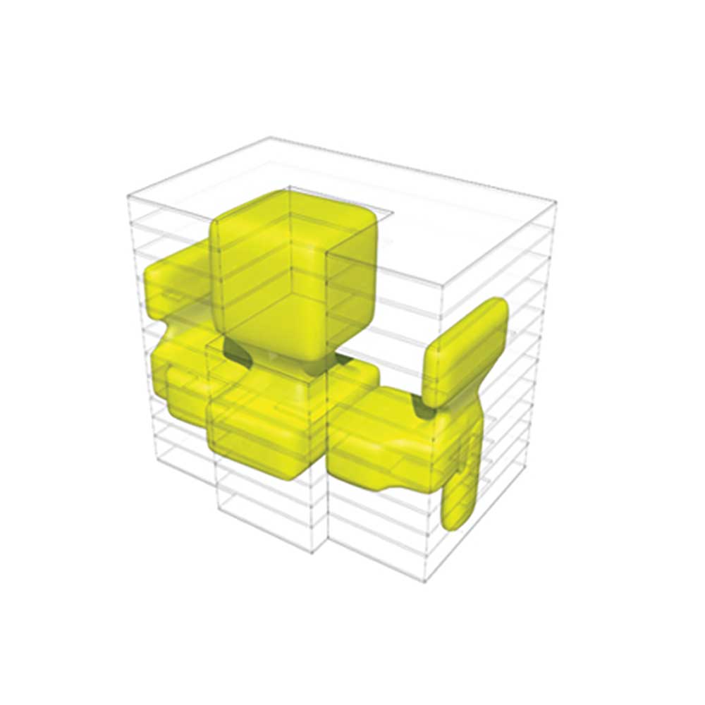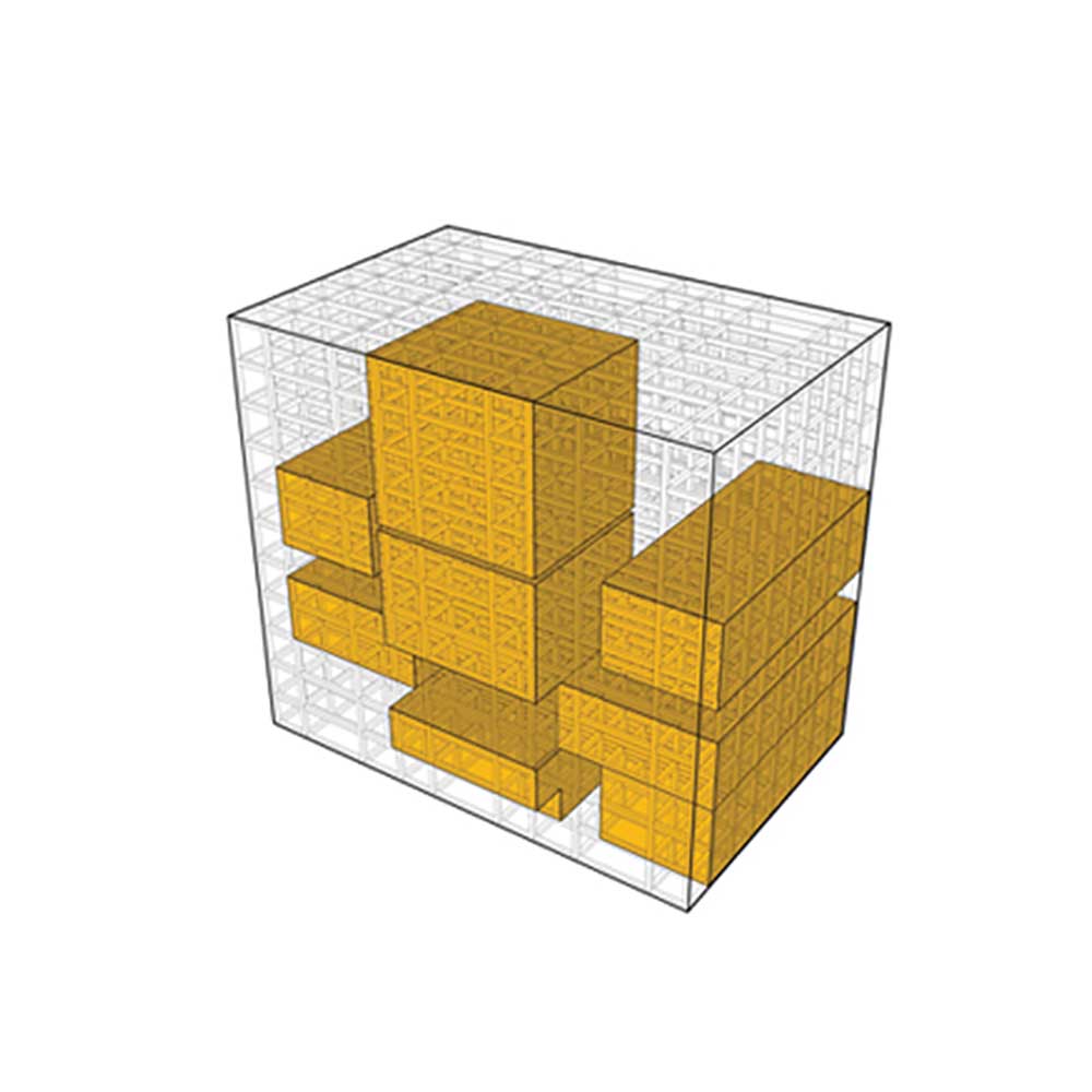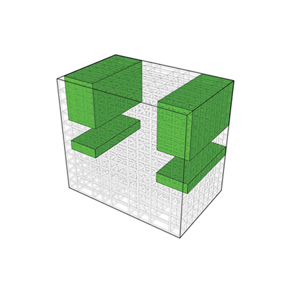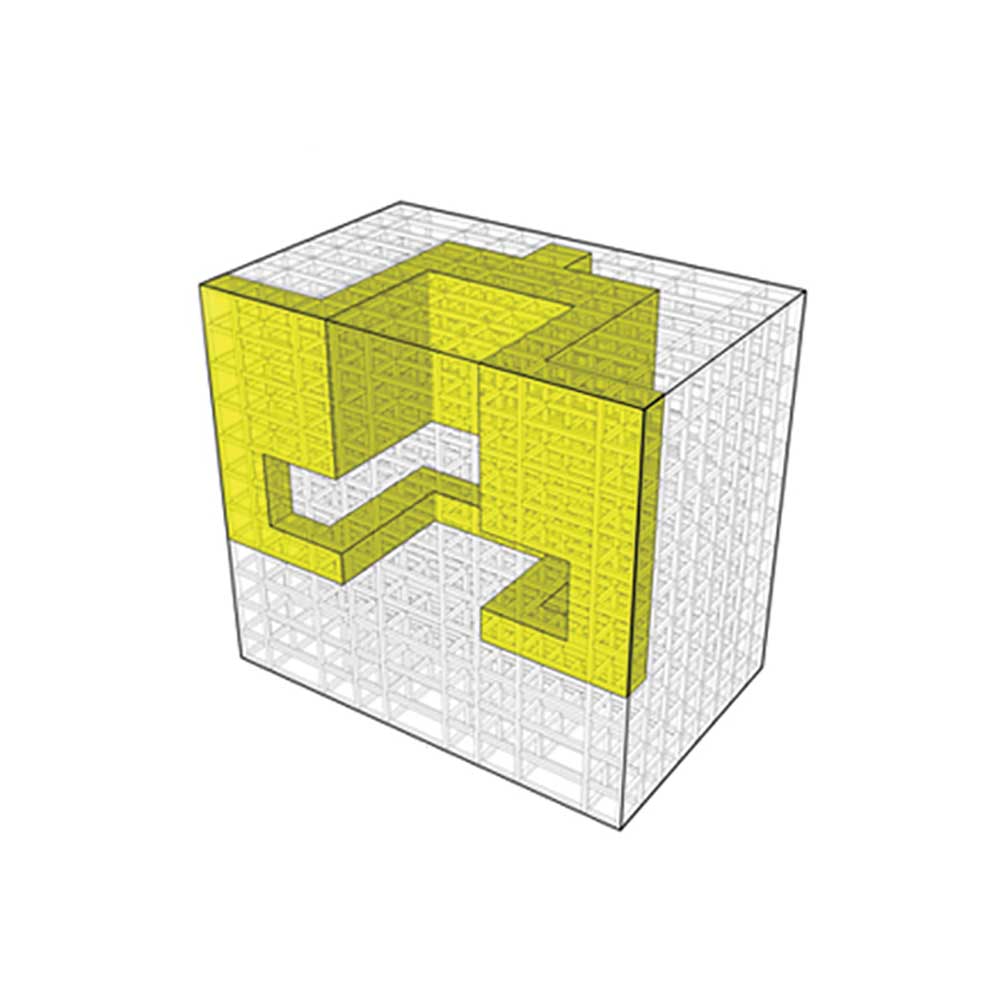 In this structure, some loops have been developed as movement and circulation areas; so all other spaces of the project were organized by them. Form and the structure of loops of each part were defined by the plan and application of that part or floor of the building. In fact, the project was created from two elements of “box” and “loop.” At first, loops with the nature of accessibility and circulation (vertically or horizontally), were placed to control the limitations of the structure, since the restraints of our structure has caused lack of integrity of spaces and lack of proper internal access. Due to the great number and remarkable size of expansion joints, they were one of the main factors of separating boxes within the building. Covering the boxes was avoided inside the building in most of the places to intensify this matter.