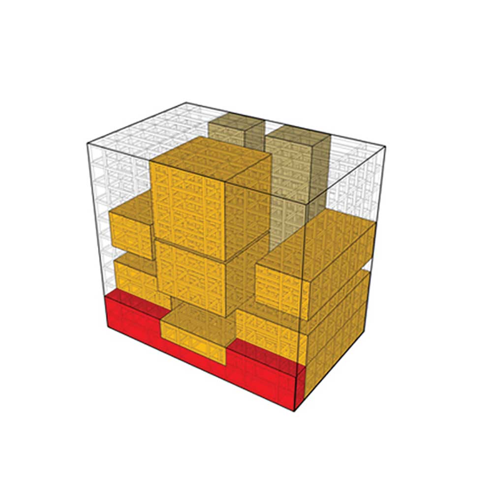 Initially, when our team was entitled to this project, the building’s foundation had been already set up. As a result, the coordination of the beams and pillars were already determined. Since reducing the cost and saving time plays a key role (according to the history of defining the project: necessity of designing and constructing the ITRC project had come up since 1978, yet it had been idle until 2004) in this project; the network of the beams and pillars were accepted and considered as the context, which helped to take advantage of such limitations (although a lot of limitations were caused due to the distances between the pillars).