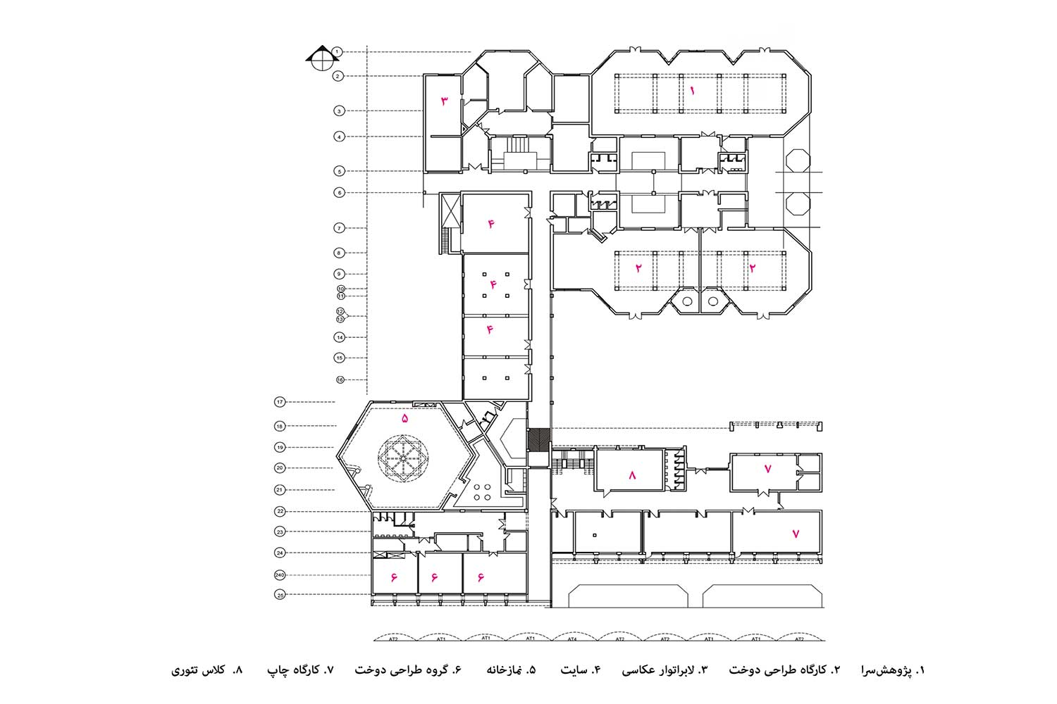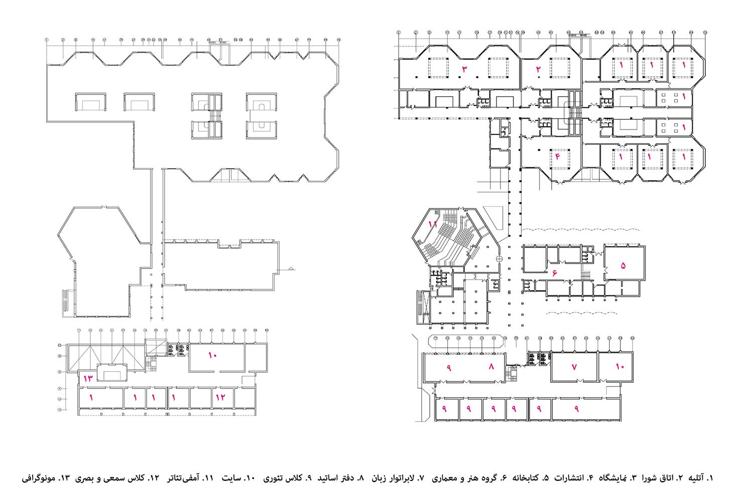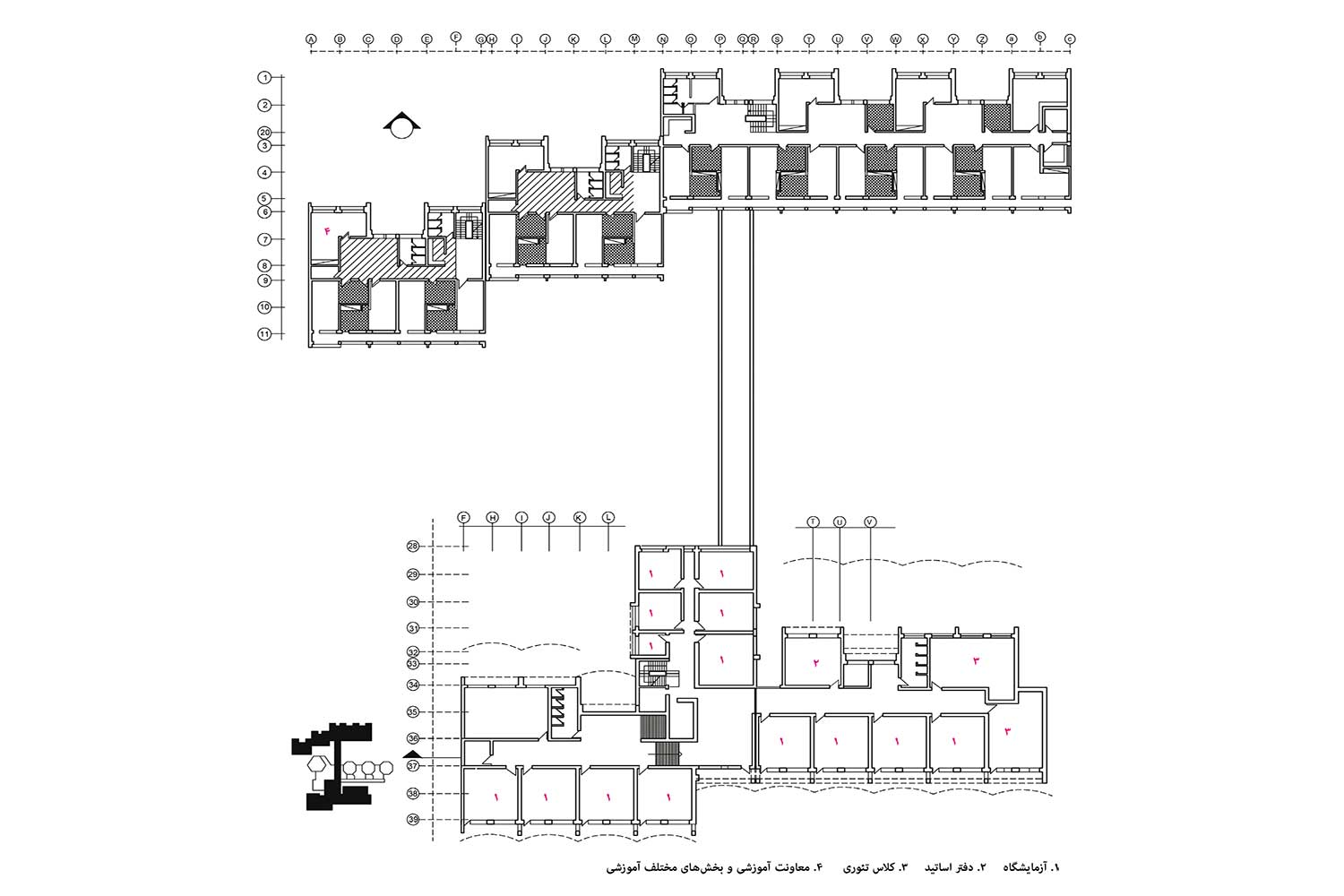 “Later, it was decided to add a teacher-training center and a vocational education building nearby — both of which were realized as part of a vast project on a 300,000-square-meter site. The groundwork, foundations, and structural framework were completed — but then the Revolution occurred, and the project was abandoned.” After the Revolution, the partially realized design was completed and put to use. Today, the complex accommodates over 6,000 female students across seven departments: Architecture, Accounting and Administrative Sciences, Horticulture, Textile and Fashion Design, Physical Education, Technical Studies (Computer), Art (Graphic Design and Painting), and Electronics.