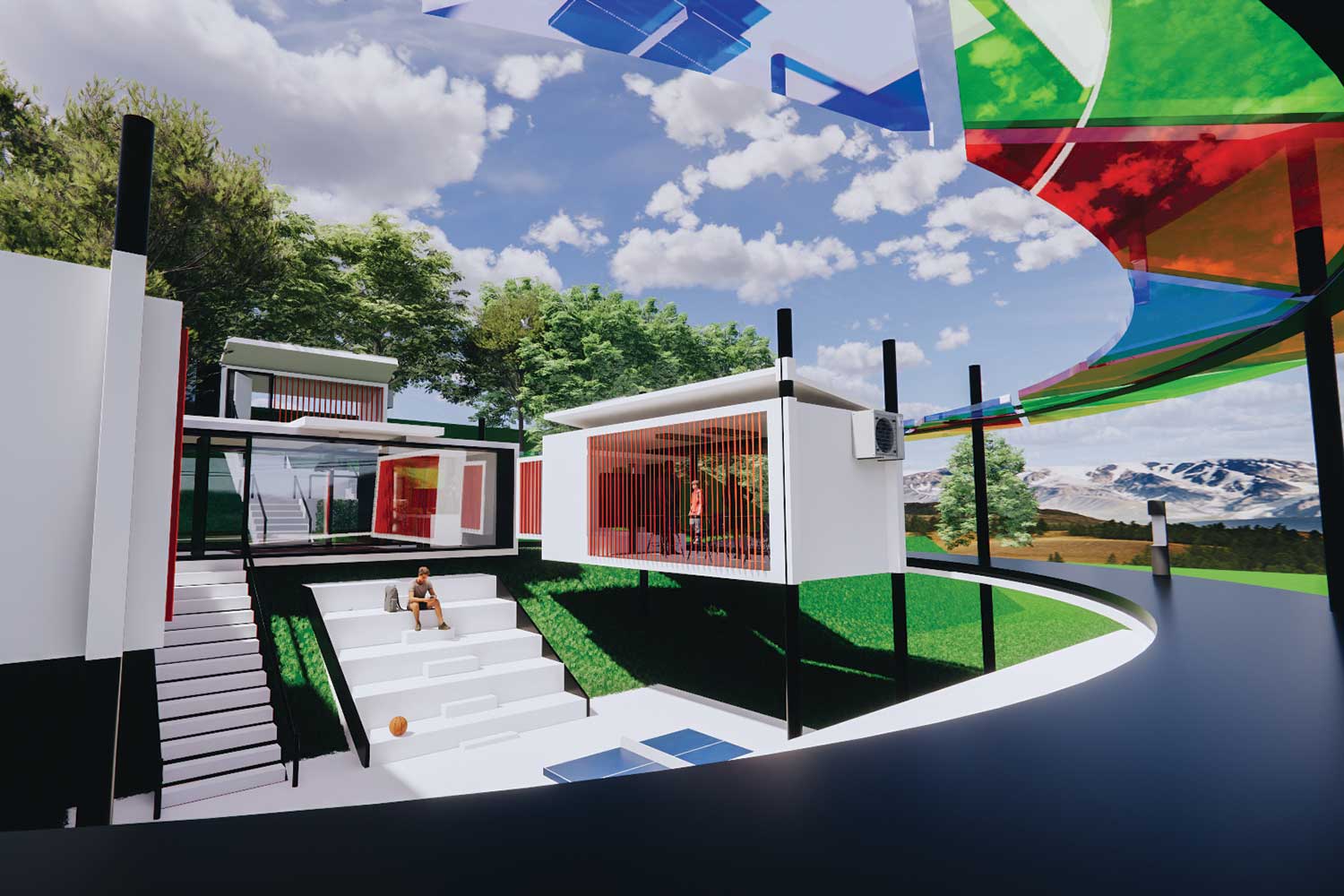 این سازهی مدولار با قابلیت نصب و جمعآوری، امکان تطبیق با اقلیمهای مختلف را فراهم میکند و به بهبود فضاها کمک مینماید. طراحی آن بر اساس استفاده از پروفیلهای پیشساخته و آمادهسازی محیط انجام شده است. تمرکز اصلی بر کاهش هزینهها با در نظر گرفتن شرایط فرهنگی، اجتماعی و اقتصادی بوده و این رویکرد با شعار «قدم نهادن به سوی آینده» هدایت شده است.