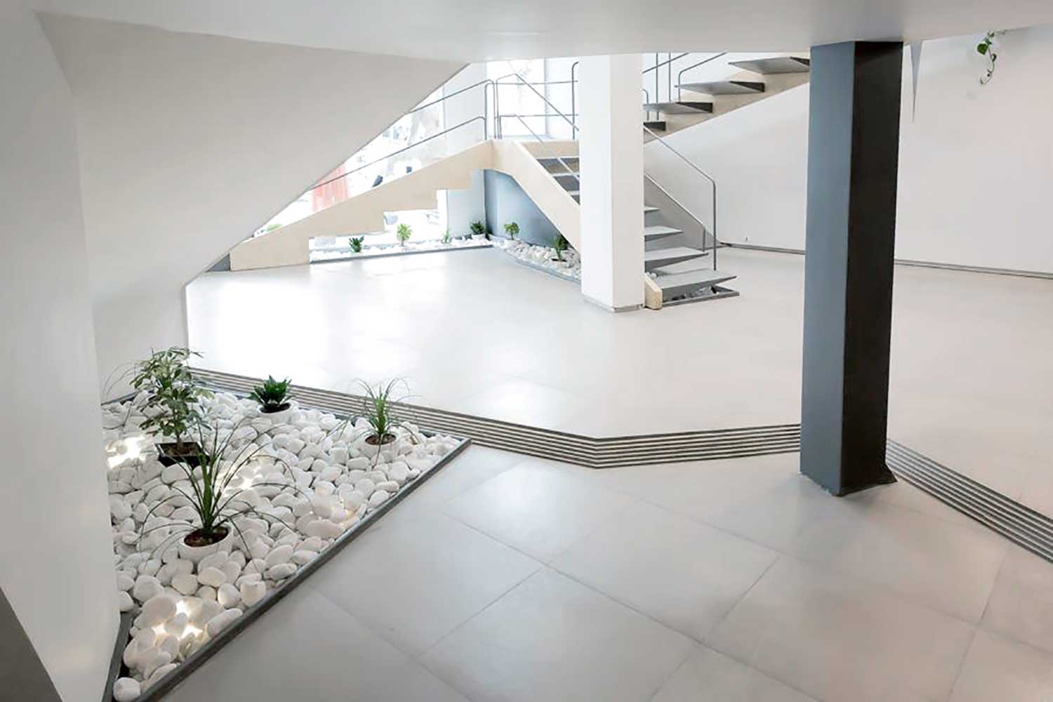 We did not try to hide that column and we approached it as an added element in general space design and in contrast with … ceiling. In addition, it was a major factor for laying out elements in internal zoning, circulation and directions.