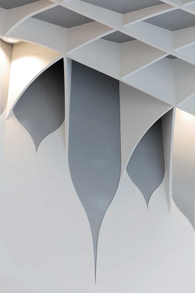 Light frames inside the ceiling cavity: Handmade and metallic