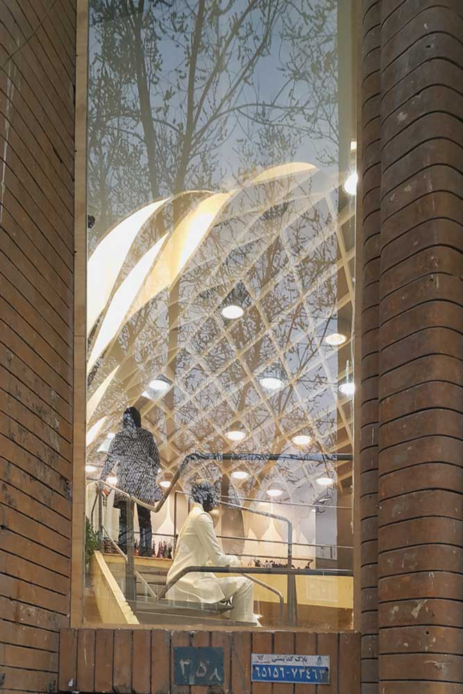 An independent inner space skin, coordinated with old building’s walls is created in the main space of the building with 5.5 meters height. This is an integral membrane, which covers floor, walls and ceiling and its form and texture are integrated with Persians patterns in a nostalgic way.
