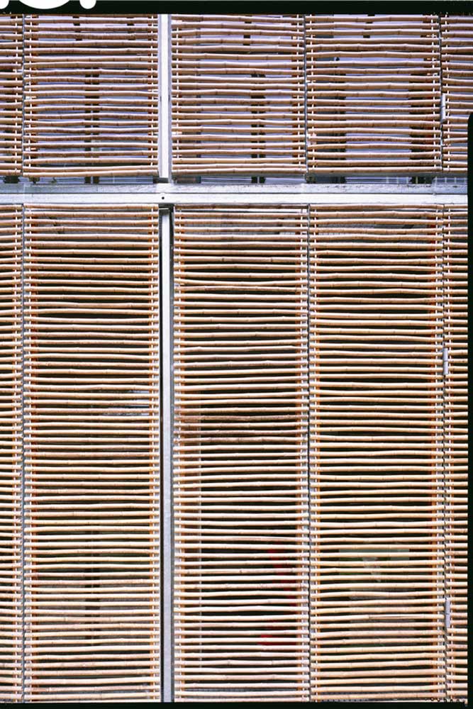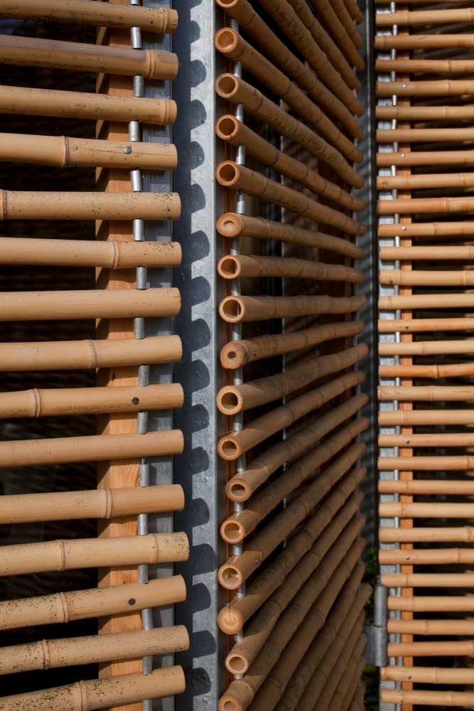 پس از بررسی دهها نوع پوشش چوبی، کارانشوآ و ویتزمن بامبو را به خاطر سبکی، کیفیت عبور نور و نامنظم بودن آن انتخاب کردند. کارانشوآ میگوید: «با توجه به جمعوجور بودن خانه، مهم بود که پوسته بسیار سبک باشد و بتوان از آن دید داشت.» در اروپا پروژههای کمی با استفاده از بامبو ساخته شدهاند و استفاده از ساقههای توخالی بامبو، به خانه هدفی اصیلتر داد و همچنین ارزانتر از چوب بود.
