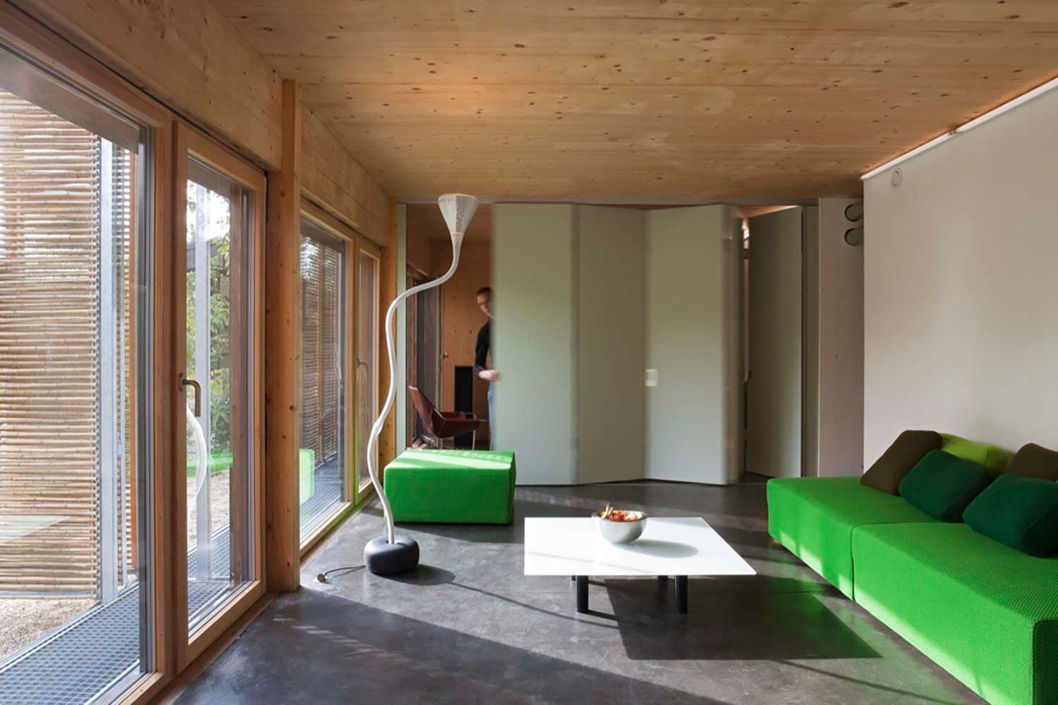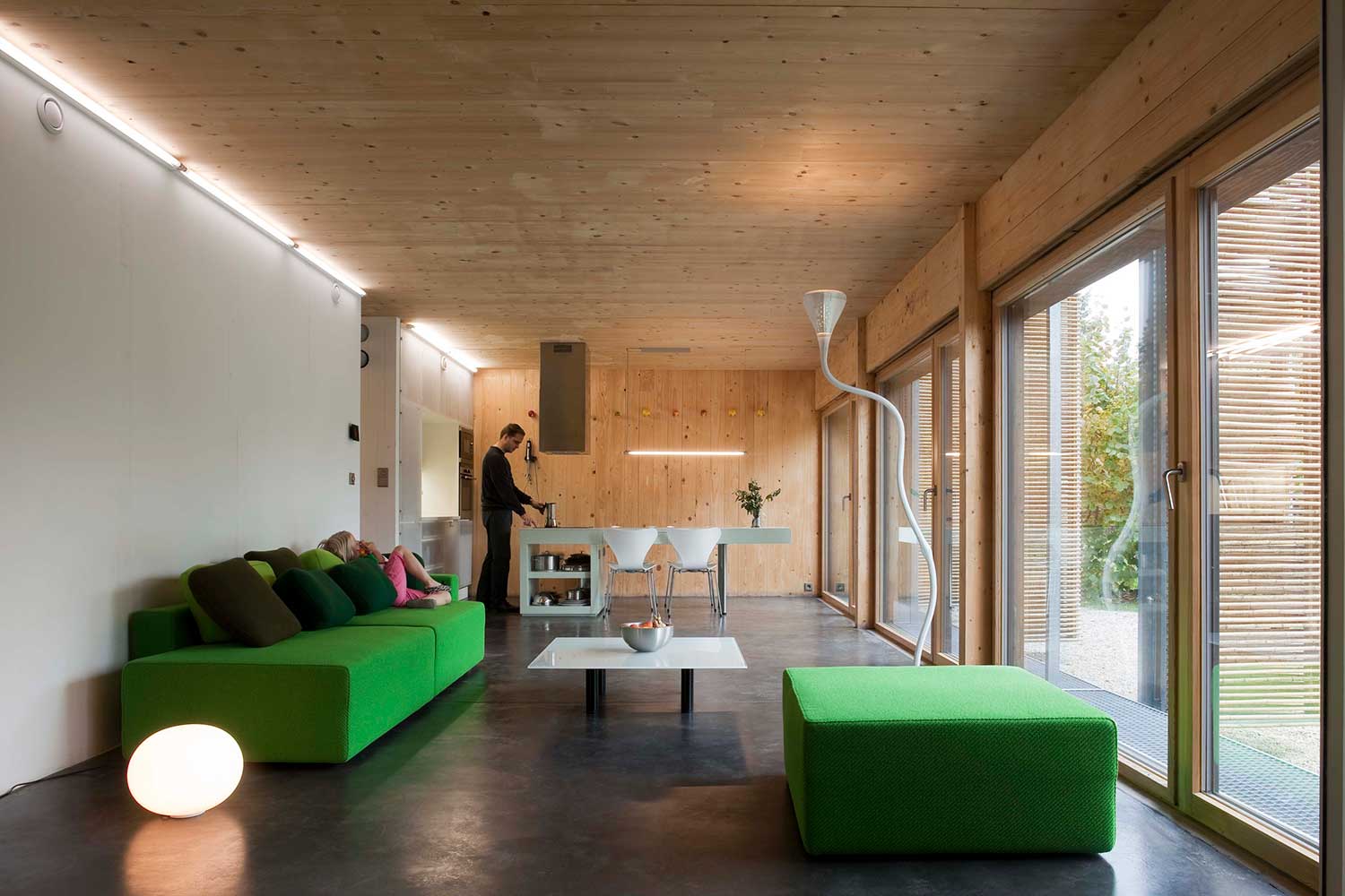 1 – Energy-saving fluorescent tubes run along the “spine” of the house, providing a spectrum close to daylight in the living room.