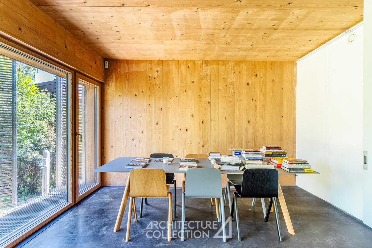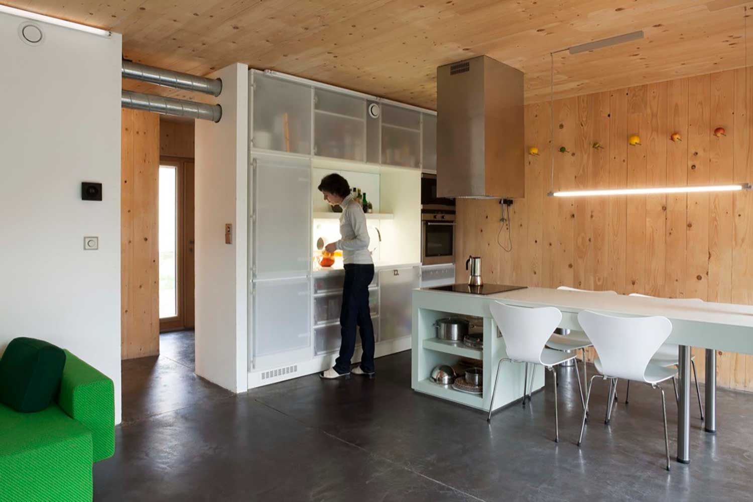 Simultaneously, Karanesheva and Witzmann had to find carpenters who could conform to the precise air tightness specifications necessary for passive houses—a rarity in France, where most builders are masons. With a carpenter from Brittany and a Paris-based firm specializing in sustainable construction in place, the project became a success.