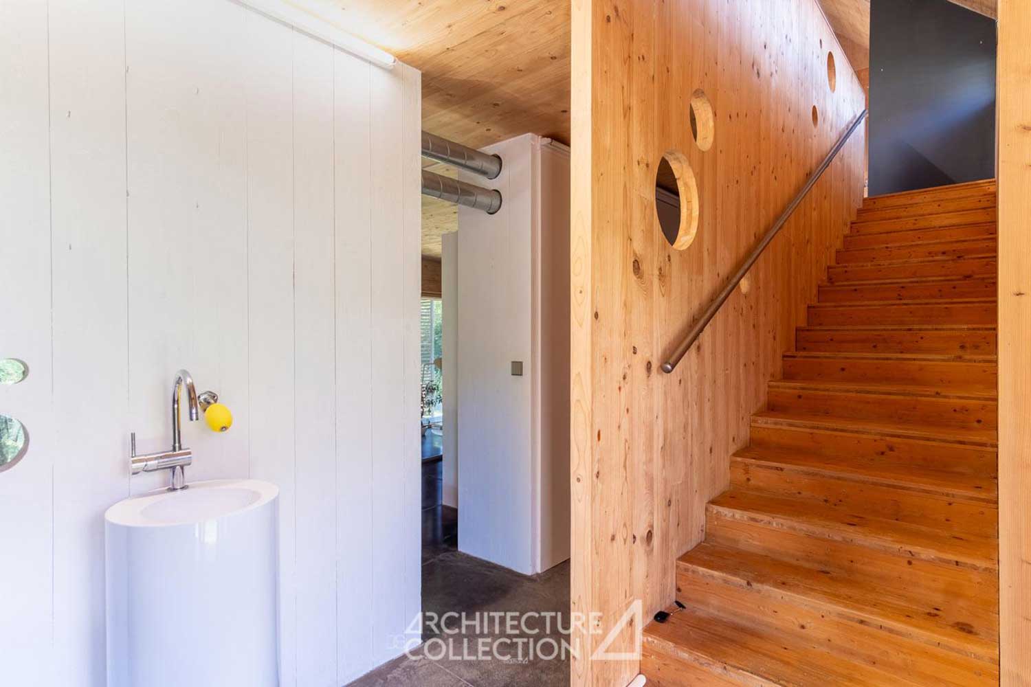5- The architects used materials, seen here in the bathroom, that are natural and untreated.
