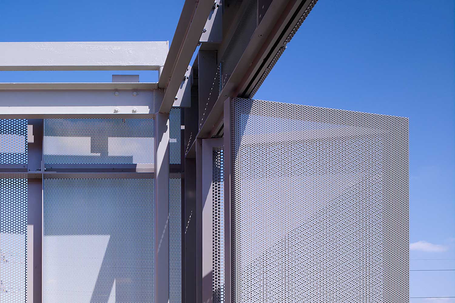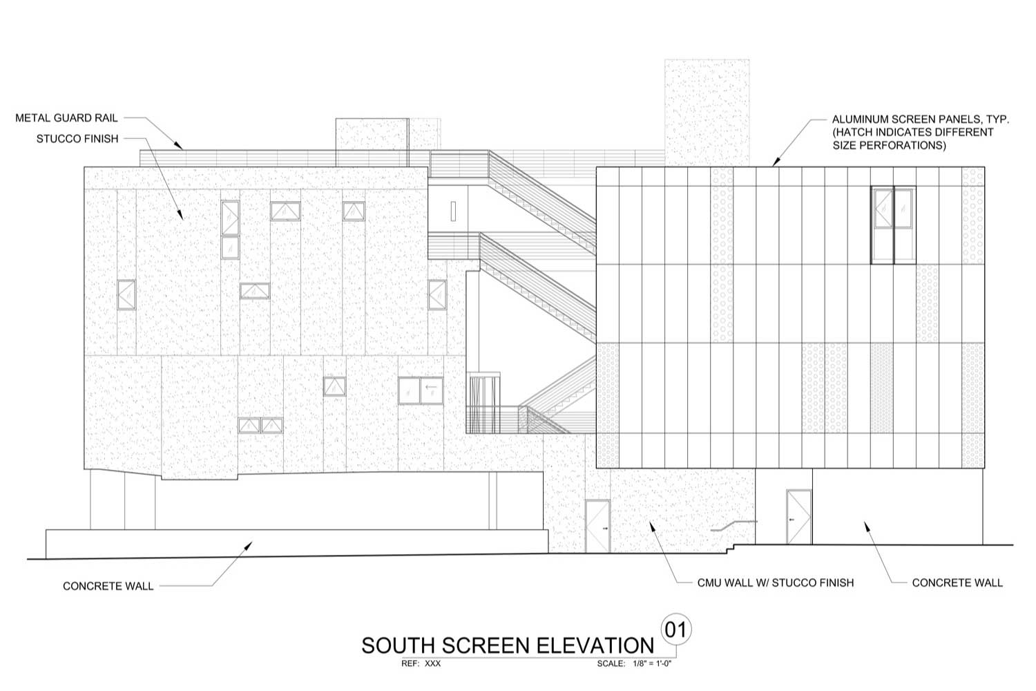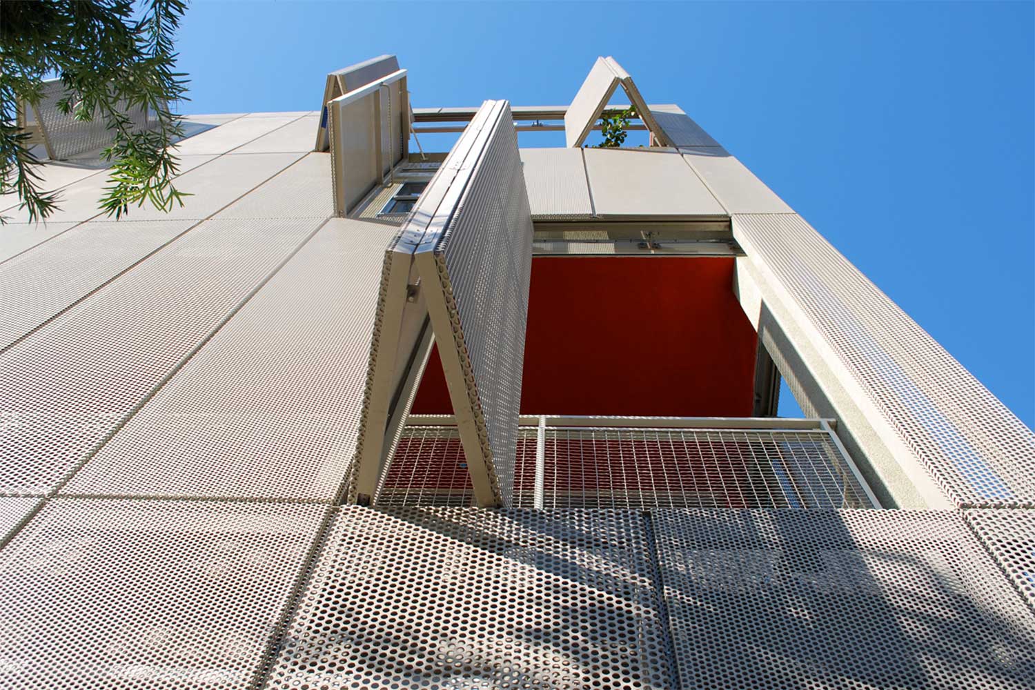 The process was collaborative, back and forth, with Cobalt Engineering modeling energy loads as architectural ideas evolved. The metal screen, initially proposed for the east facade, was wrapped around and fine-tuned to optimize the shell’s efficiency. Simple massing with a central court exploited prevalent (cross-ventilating) breezes and sun angles. Such passive strategies enabled Cherokee to exceed the nation’s most stringent energy code, California’s Title 24, by 40 percent.