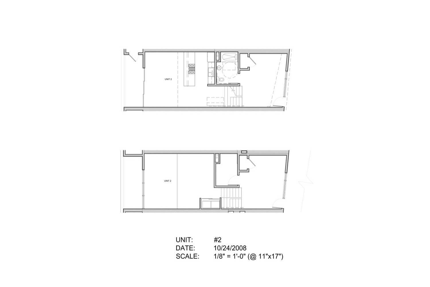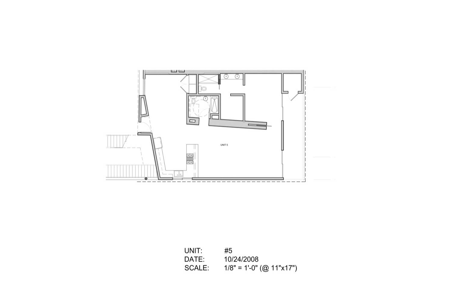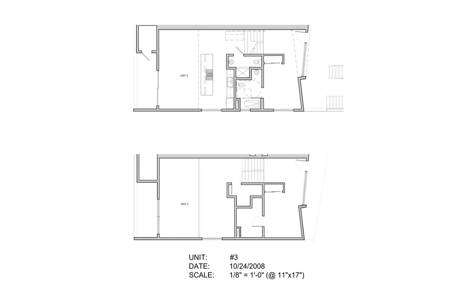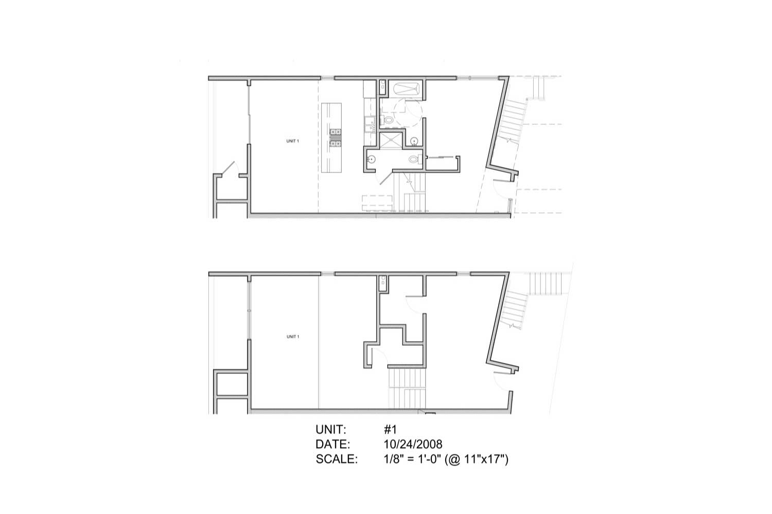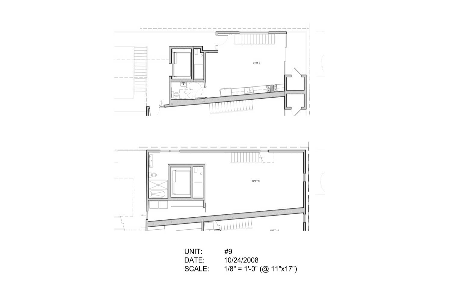 A central courtyard provides for cross-ventilation, daylight, and shade. The building is rigged for PV panels, a future investment. Artfully collaged swatches of recycled skateboards or metal scraps form the kitchen backsplashes. The lofts’ many sustainable features include efficient lighting and plumbing fixtures, and low- (or no-) VOC paint.