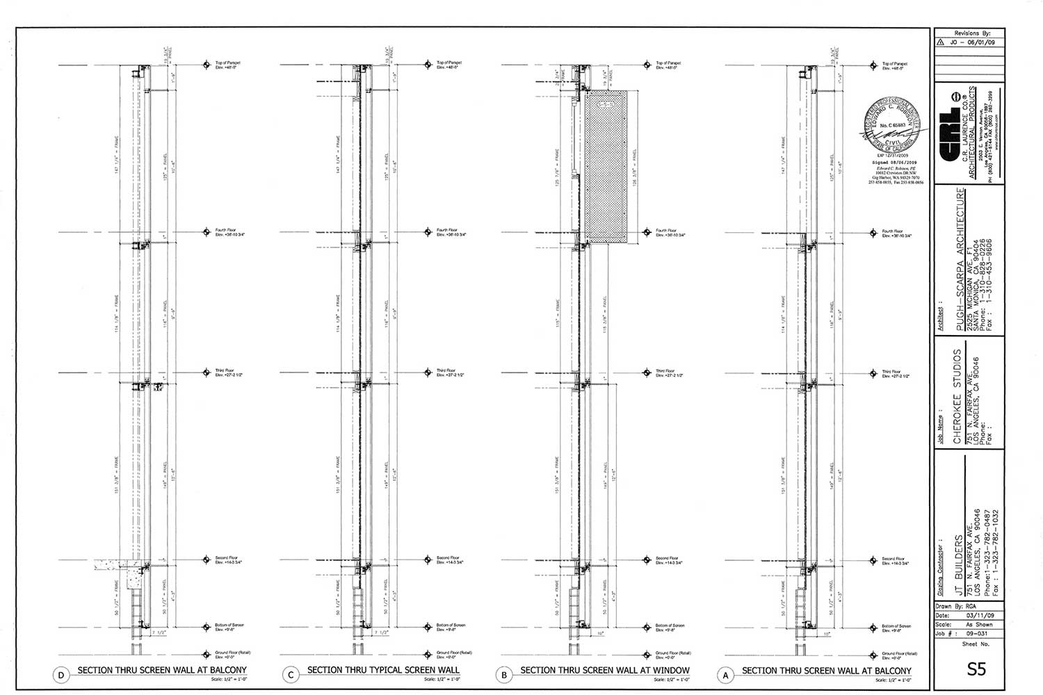 در زیر پوشش گیاهی، صافی‌های عمودی بزرگی جریان آب را هدایت می‌کنند. رایتس مصمم بود از هدررفت و آلودگی ناشی از رواناب جلوگیری کند، اما تمایلی به قربانی‌کردن فضای زیرزمینی یا حیاط‌های فرعی نداشت. به همین دلیل، شرکت ReThink ماه‌ها برای دریافت مجوز تبدیل فضای عمومی شهری به فضای سبز صرف کرد و بدین ترتیب، معیاری برای توسعه‌های آتی ایجاد شد. سایر ویژگی‌های برجسته سبز شامل آسانسوری است که به‌اندازه یک سشوار برق مصرف می‌کند و سطوح بین کابینتی ساخته‌شده از اسکیت‌بردهای بازیافتی. گرچه پروژه هنوز در حال جذب مستأجر است، اما رایتس اطمینان دارد که «طراحی یکپارچه و هوشمند سبز، بازدهی سرمایه‌گذاری اولیه را افزایش می‌دهد.» از پرفروش‌ترین آثار موسیقی تا اخذ گواهینامه LEED، پروژه چروکی در مسیر تبدیل‌شدن به پلاتینیوم سبز راک‌اند‌رولاست.