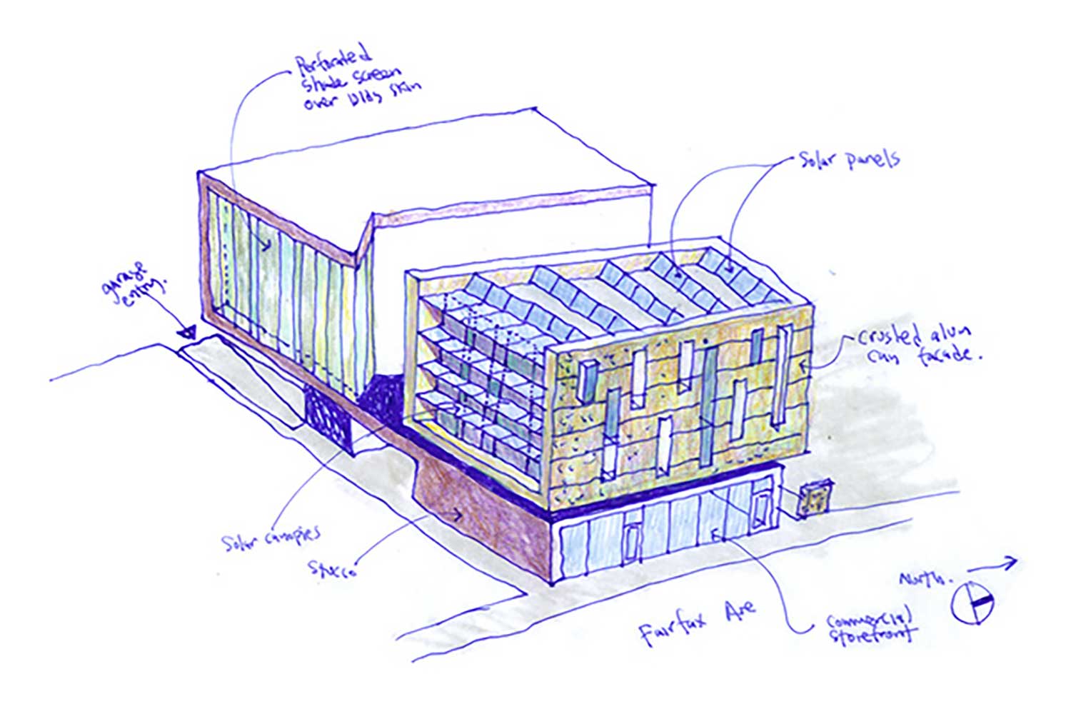 This project not only highlights advanced strategies in sustainable design—such as VRF HVAC systems, a green roof, and compliance exceeding California’s stringent Title 24 energy code—but also pays homage to the musical heritage of the site, formerly home to the legendary Cherokee Recording Studios.