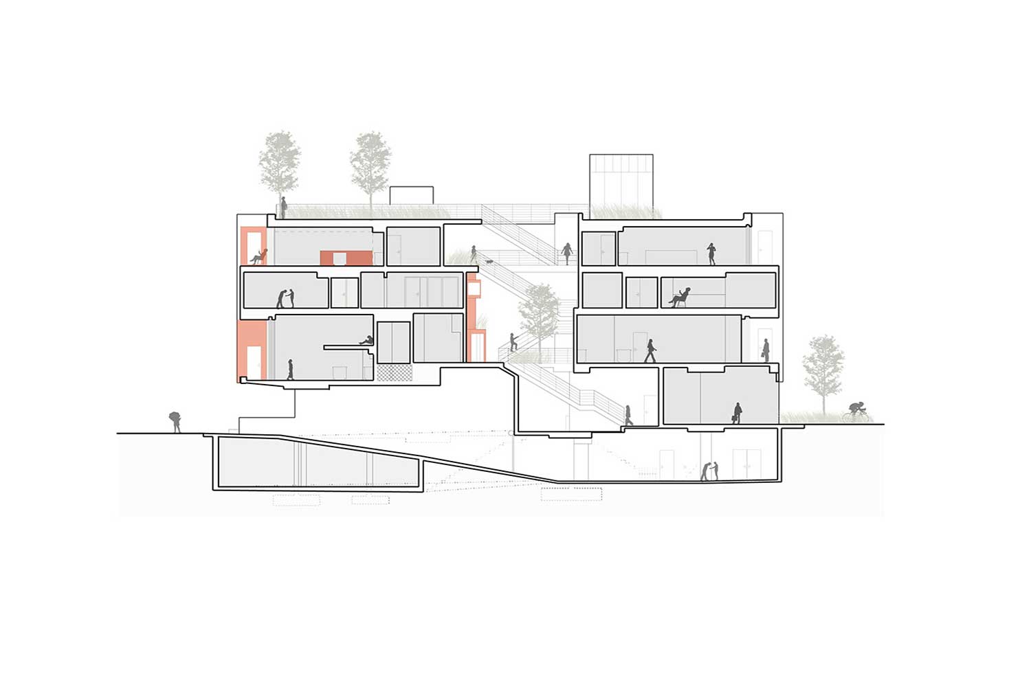 لوفت‌ها با حیاط مرکزی خود، نور، تهویه‌ی متقاطع و سایه را به درون می‌کشانند. سطح بین کابینتی آشپزخانه‌ها از اسکیت‌بردهای بازیافتی یا ضایعات فلزی ساخته شده است. آسانسورها به اندازه یک سشوار انرژی مصرف می‌کنند و سیستم مدیریت آب باران پروژه به یک الگوی نوین در سطح شهر بدل شده است. از مصالح بازیافتی تا تأسیسات مکانیکی هوشمند، این پروژه گواهی است بر اینکه طراحی مسئولانه می‌تواند هم‌زمان زیبا، کارآمد، و فرهنگی باشد.