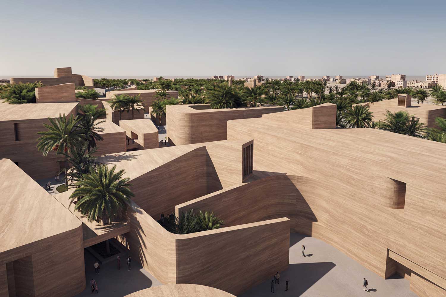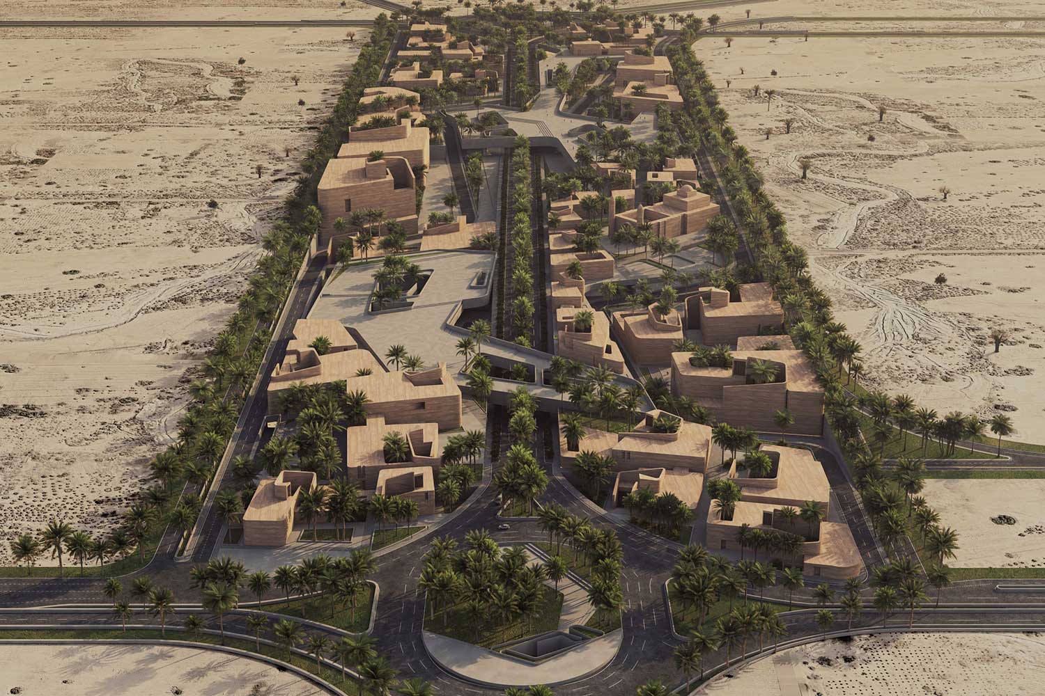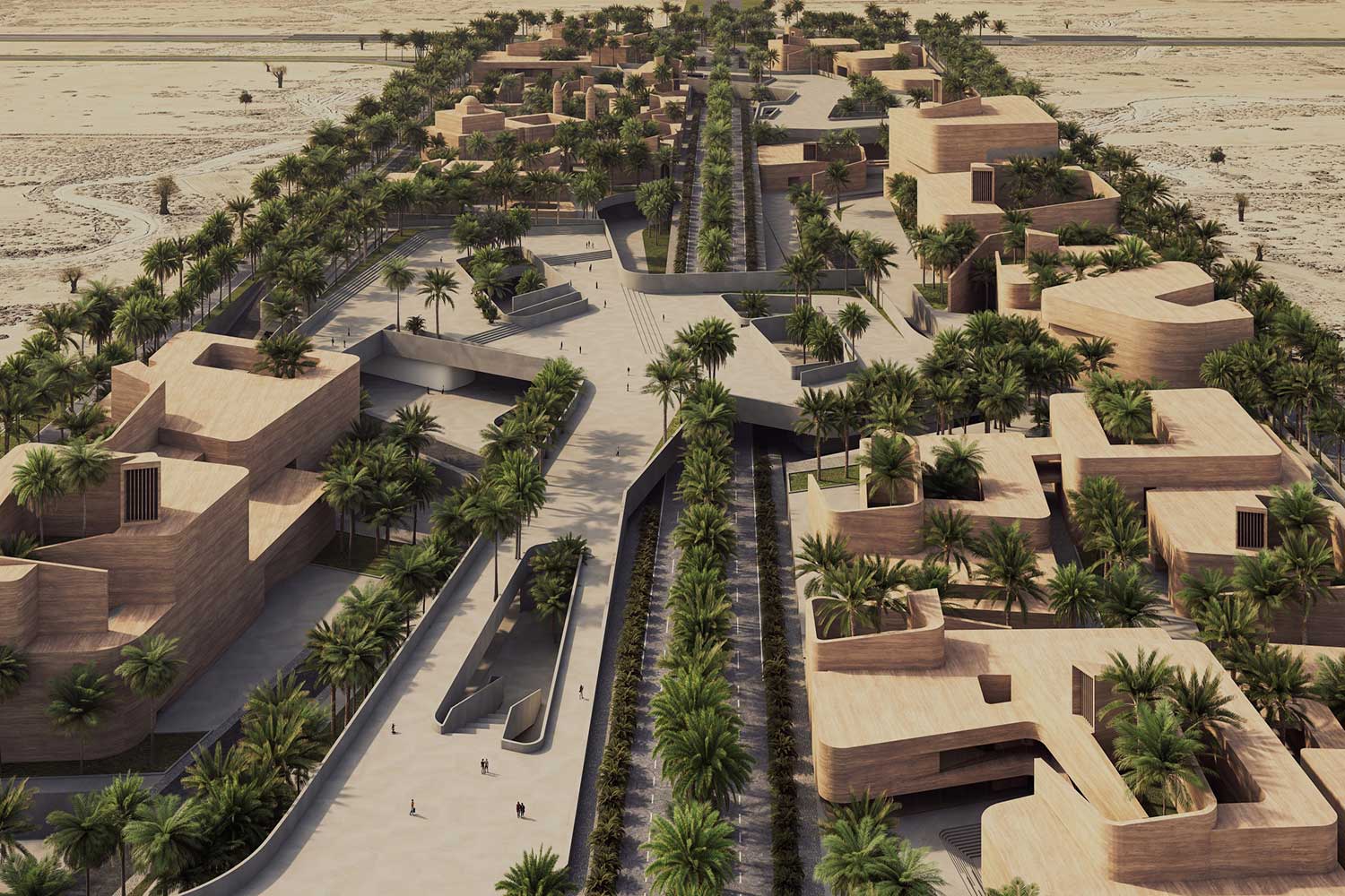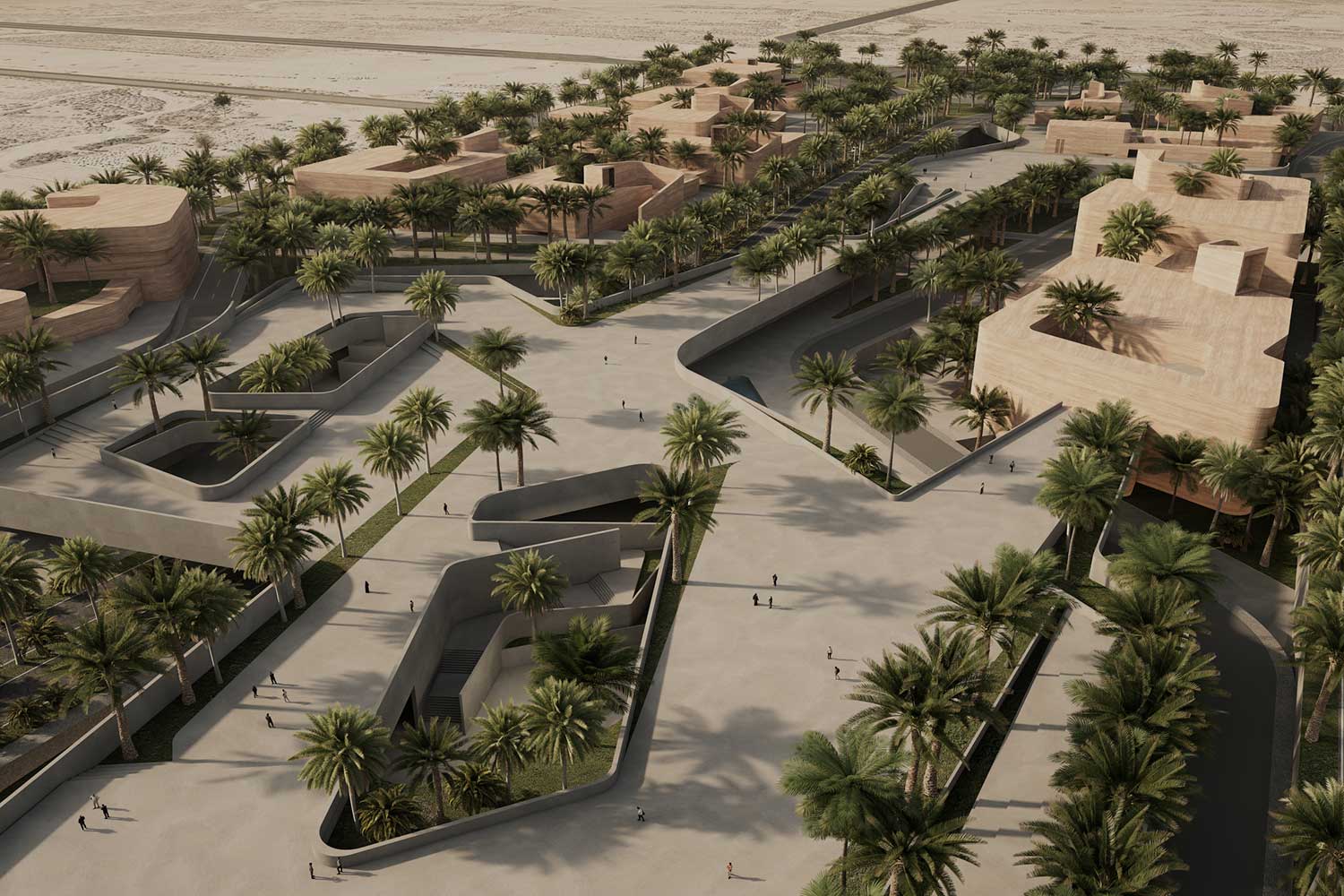 On December 26, 2003, a devastating earthquake struck the city of Bam, located in Kerman Province in southeastern Iran. This tragic event claimed the lives of approximately 60,000 residents. While the Arg-e Bam—the world’s largest adobe structure—suffered severe damage, parts of it remained standing, continuing to serve as a profound symbol of the city’s historical and cultural identity. In the aftermath of the disaster, an extensive national and international effort was launched to rebuild the city. Reconstruction initiatives involved governmental bodies, private sectors, and humanitarian organizations, and over the years, substantial portions of the urban fabric were restored. Although most of the city had been reduced to rubble, the enduring presence of the Arg became a source of inspiration and a catalyst for reviving Bam’s architectural and cultural spirit. The initial phases of redevelopment prioritized the restoration of vital infrastructure, public buildings, and residential units, ensuring that displaced residents could gradually return to normal life. Simultaneously, strategic attention was directed toward establishing automotive manufacturing facilities to stimulate local employment and economic resilience. Now, more than two decades later, Bam is entering a new phase of spatial growth and architectural regeneration. At the heart of this expansion is the proposal for a cultural–touristic–commercial axis, envisioned as the city’s new urban spine. Given Bam’s millennia-old heritage, the design honors the region’s architectural lineage and deep-rooted cultural identity, fostering an emotional and symbolic connection between the people and the built environment. The project site’s linear geometry naturally lends itself to reinterpretation through the lens of the traditional Iranian bazaar—a typology deeply embedded in the cultural memory of the region. The design draws direct inspiration from the historical Kerman Bazaar, one of the most exemplary manifestations of this urban model. Simultaneously, the spatial and formal language references elements of the Arg-e Bam, creating a harmonious sense of familiarity and continuity for users. The built fabric is intentionally fine-grained, following an equitable hierarchy that evokes the organic evolution of traditional bazaars. In response to Bam’s extreme hot and arid climate—often exceeding 45°C for much of the year—passive climatic design is prioritized. Architectural elements such as shaded arcades, wind towers, dense urban grain, and strategic massing provides natural thermal comfort throughout the day. Continuing Bam’s legacy as a “garden-city,” the project integrates drought-resistant palm trees, ensuring continuity of green infrastructure while contributing to microclimatic cooling and urban ambience. Portions of the buildings are partially embedded into the ground to generate extended shade and minimize energy consumption. Water features strategically placed near shaded areas enhance spatial comfort and evoke a sensory experience of vitality and renewal. This new axis comprises a dynamic mix of cultural, commercial, hospitality, and public functions. It is conceived as a living, breathing urban system—a catalyst for restoring civic life and reinterpreting Bam’s ancient narrative. A city defined for millennia by three enduring elements: garden, water, and shade.”
