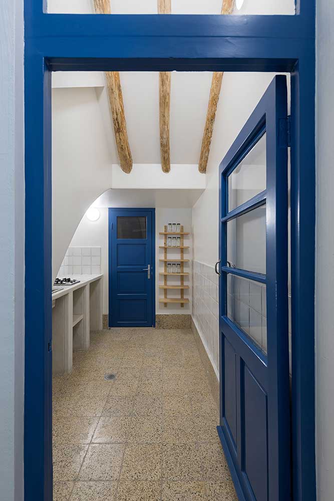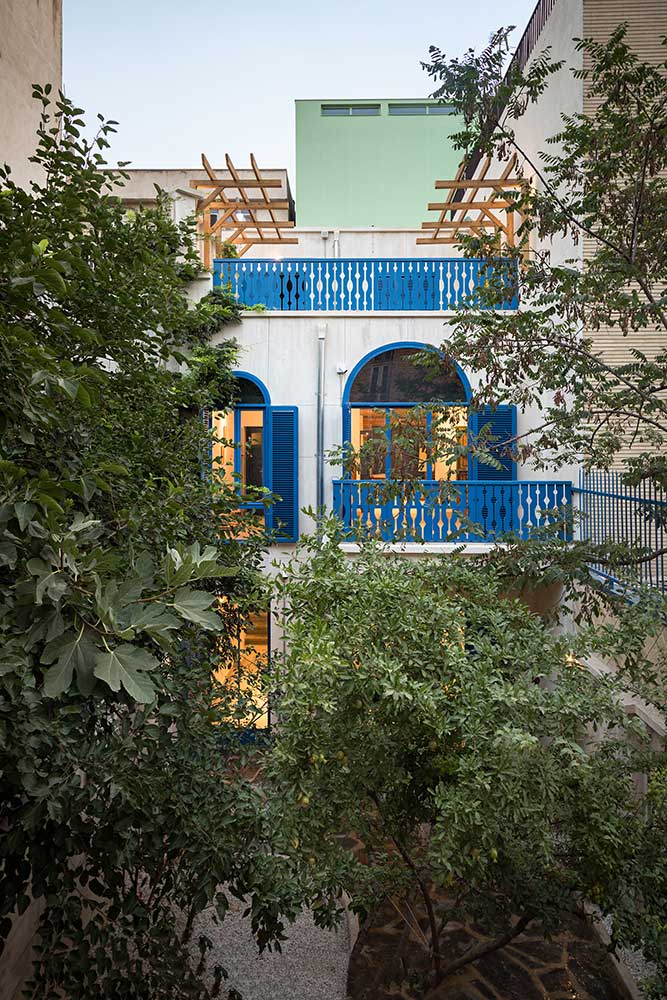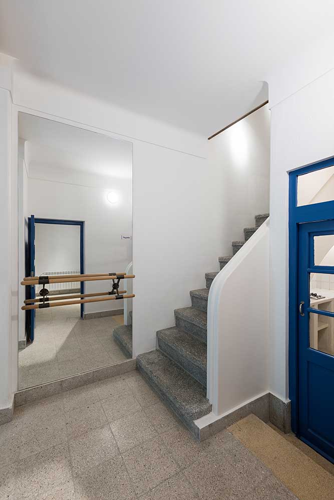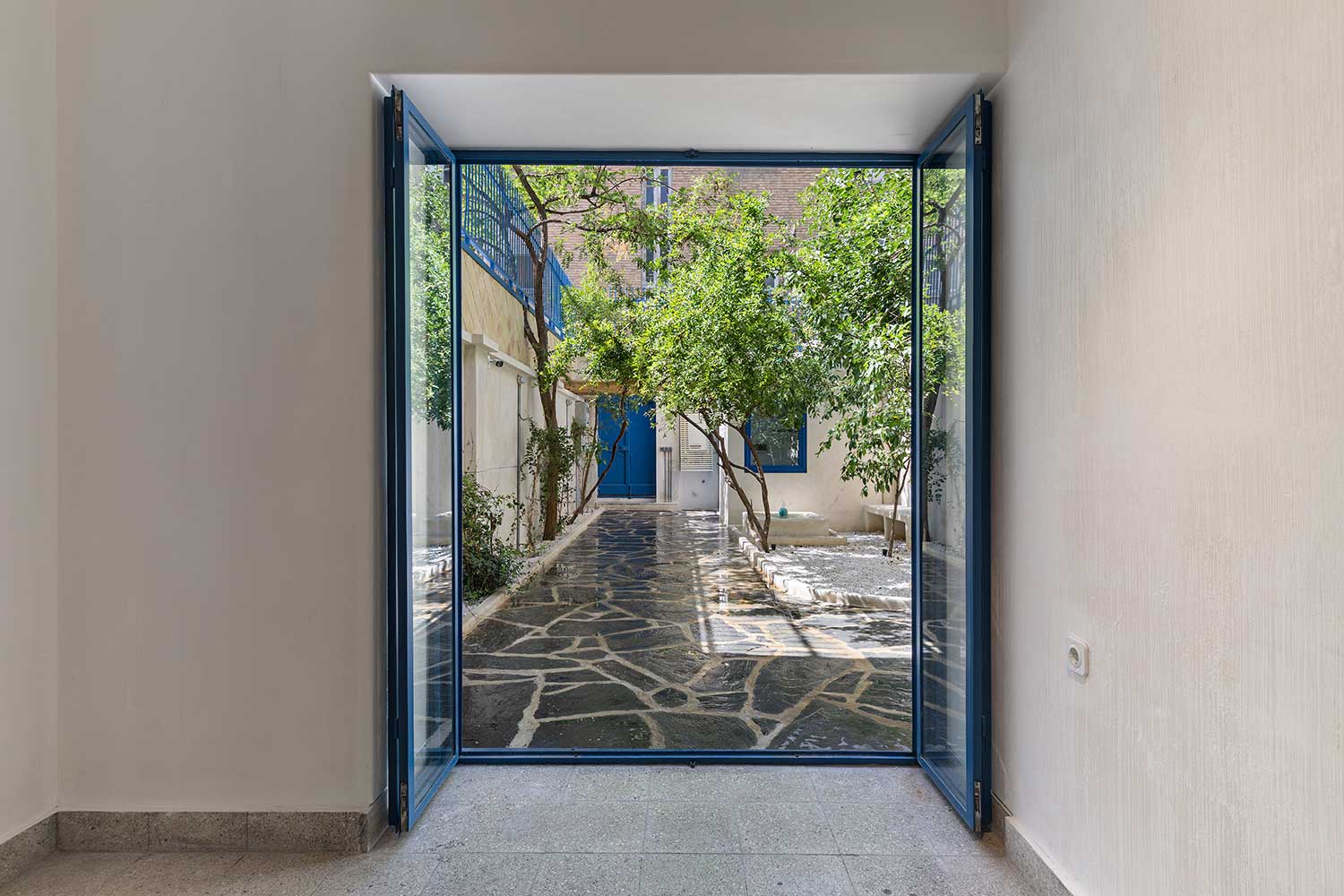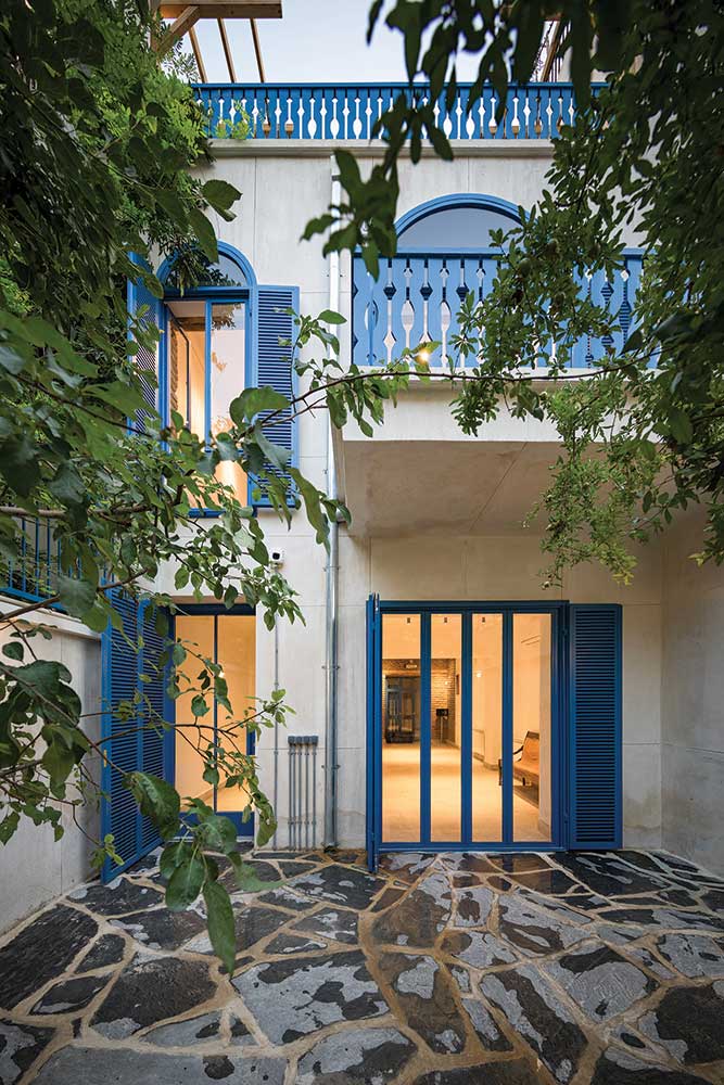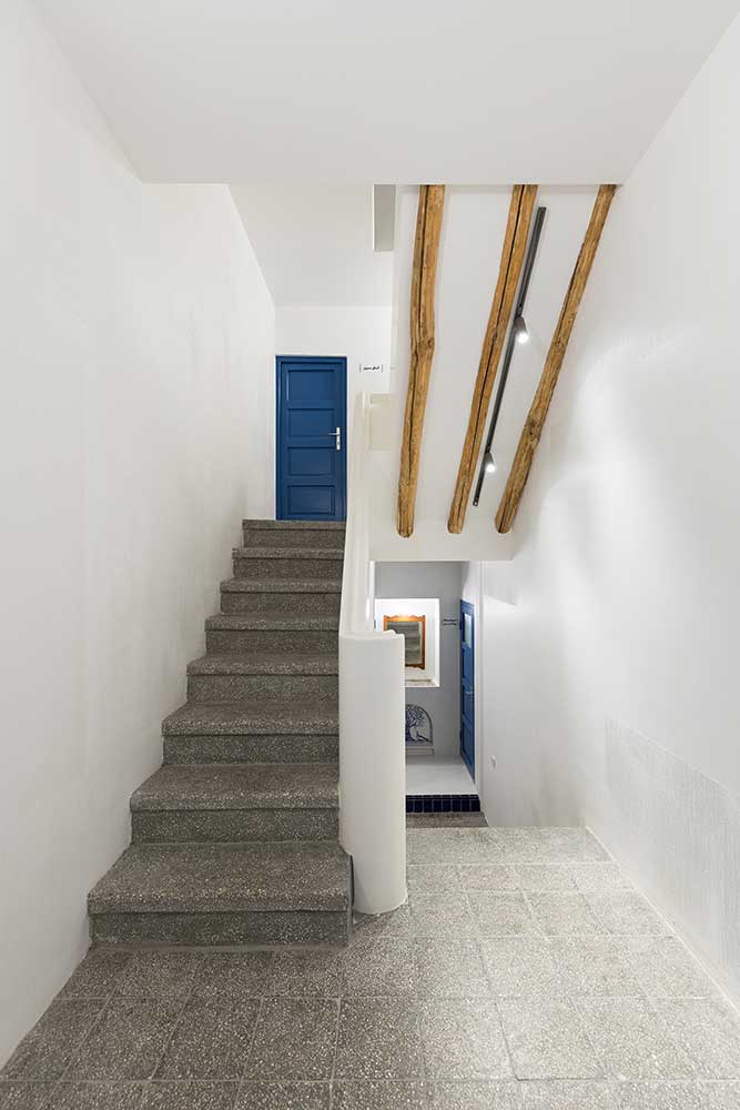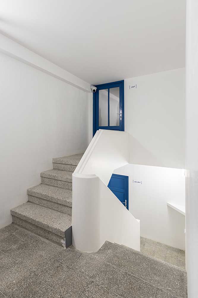 During the restoration of the building’s plasterwork, our attention was drawn to the brickwork and the old wooden lintels above the doors and windows. In some parts of the building, this valuable brickwork was cleaned of plaster, repointed, and left exposed, becoming one of the project’s signature elements. Other valuable features, such as the plaster handrail on the staircase, the terrazzo stairs, the wooden lintels above the doors, the wooden doors, and the main façade of the building, which was finished with washed cement, were repaired, restored, and in some cases, rebuilt to match the original designs.