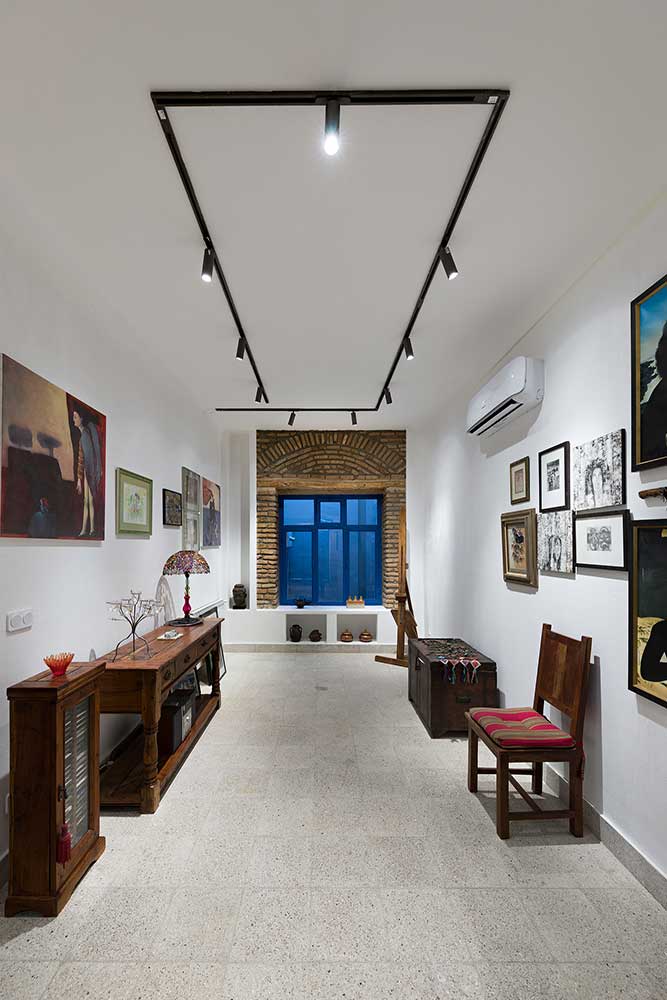The building, with a history of approximately 70 years and a floor area of 220 square meters across two levels, is located in the first close at the beginning of Henry Corbin Street. Its position within the cultural district of Roudaki and its proximity to important cultural centers such as Shahrzad Theater, Nofel Loshato Theater, Vest Gallery, and Colonel Bahrami’s House are notable aspects of its location. On the ground floor, there is an entrance hall, a performance room, a kitchen, and a storage room. On the mezzanine level, the public restrooms have been restored in their original location. The first floor features two galleries connected by a doorway, with a small balcony on the south side of the southern gallery. The second floor houses the management office, which includes a bathroom, and a spacious balcony on the south side of the room. Additionally, there are two storage rooms on two other mezzanine levels, one of which has been designated as the server room.